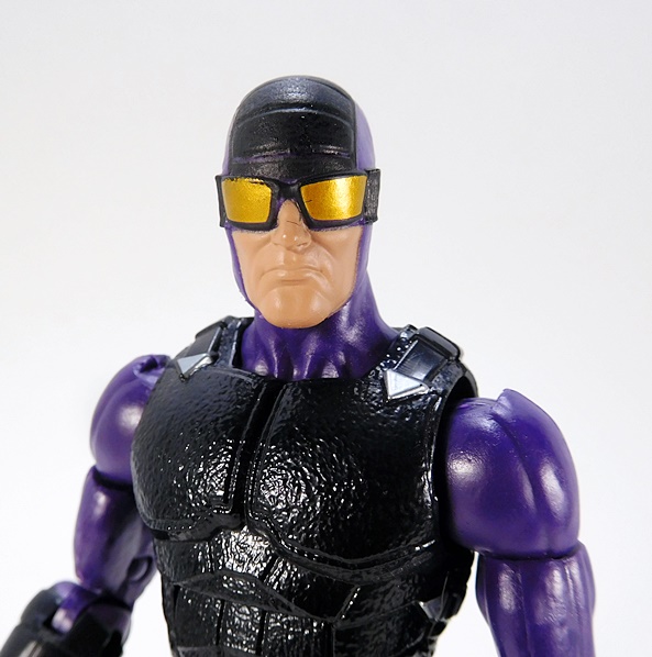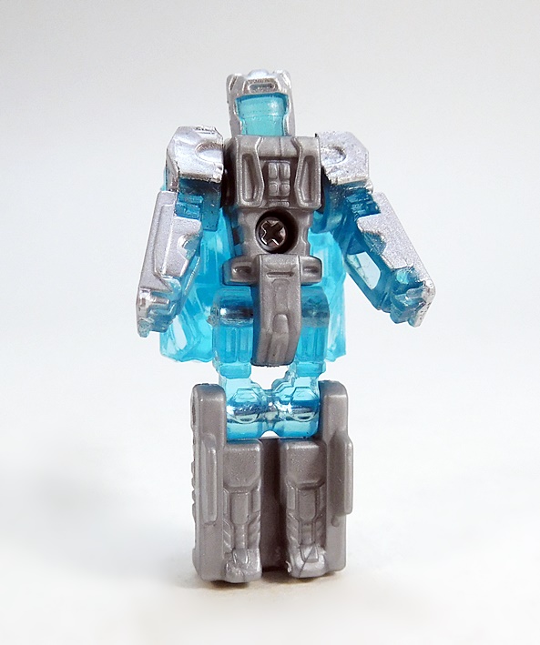 And that brings us to the head sculpt, and I’m happy to say that Blot is characteristically sporting a flat slab of head. The squared off “helmet” looks like it’s made to take a beating. The face is painted silver and he has a red visor across the top. Every bit of his face makes him look like an unpleasant fellow. I get the feeling that the phrase, “Oh crap, Blot showed up!” is a line often spoken at Decepticon gatherings.