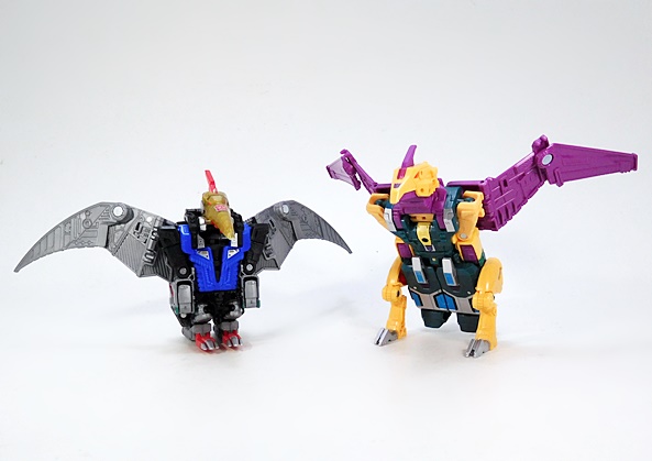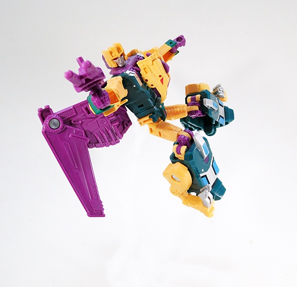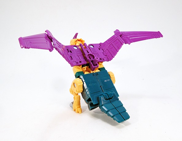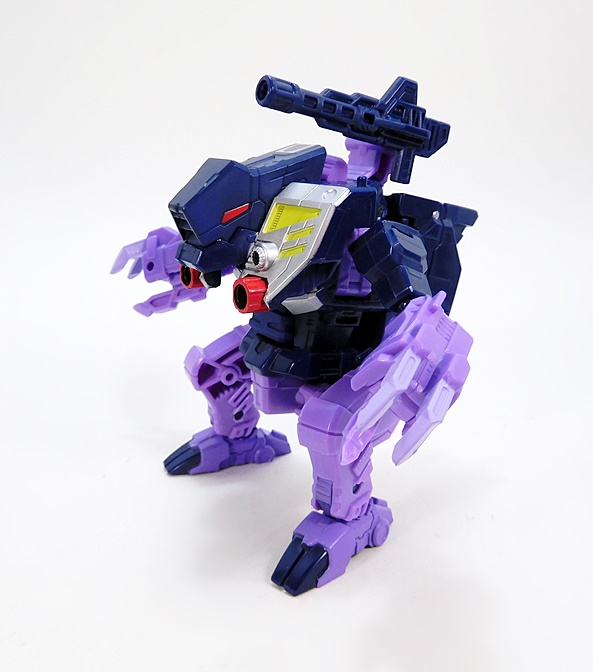 There’s a protrubance behind his head that allows you to plug in his slime gun. I just wish he came with two so I could double it up and get a little symmetry going. The deco here is pretty much the same as his robot mode, which is a good thing. One irritating thing… both Blot and Rippersnapper have rub signs in their beast mode, but they omitted it from Cutthroat’s. Go all in, or don’t do it at all, Hasbro!