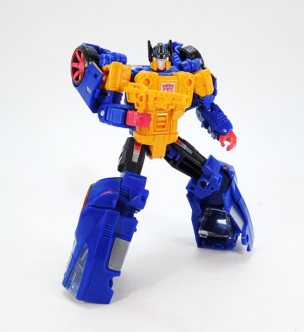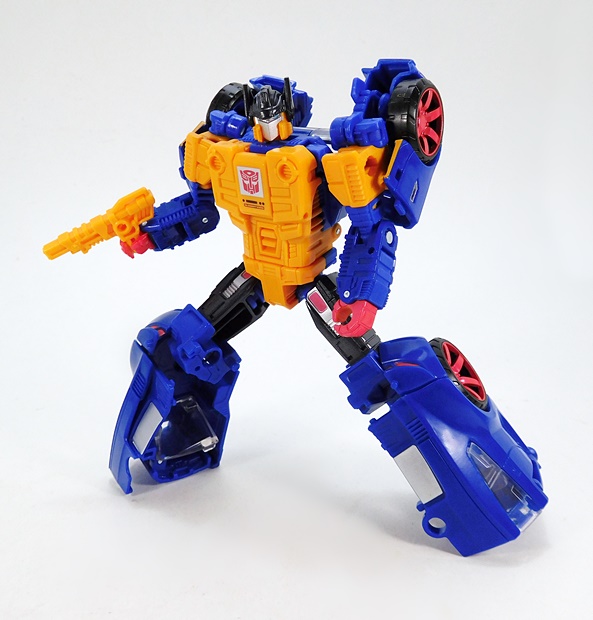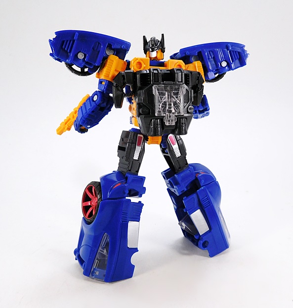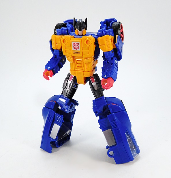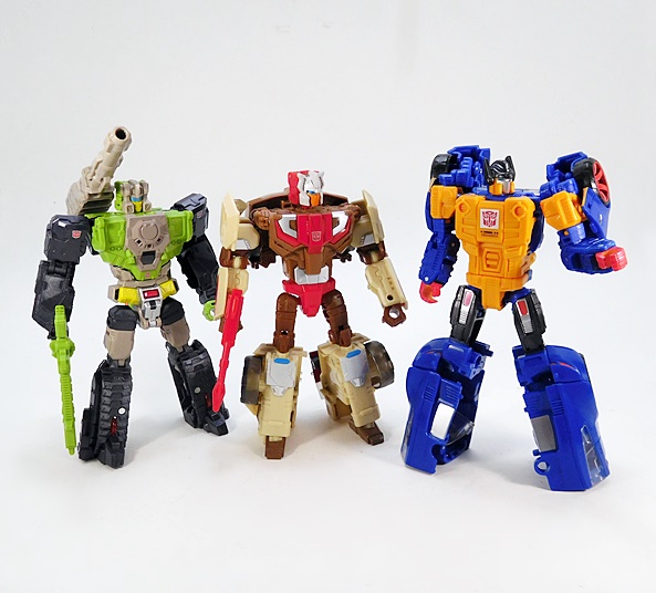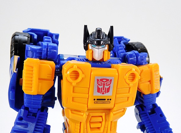 With some shared engineering and parts, Blot’s transformation is a little like Rippersnapper’s, but there’s enough new here to make him feel unique and the end result is this wonderful little ball of WTF. It’s like a cross between a slobbering fantasy beast and something out of MechWarrior and I love it to pieces. I especially dig how folding in the robot hands rolls out the third claw for his beast hands. The boxy head is nestled between two silver and yellow armor plates and there are little nozels, which I presume are designed to deliver some kind of hot death to Autobot fools.