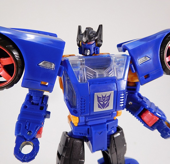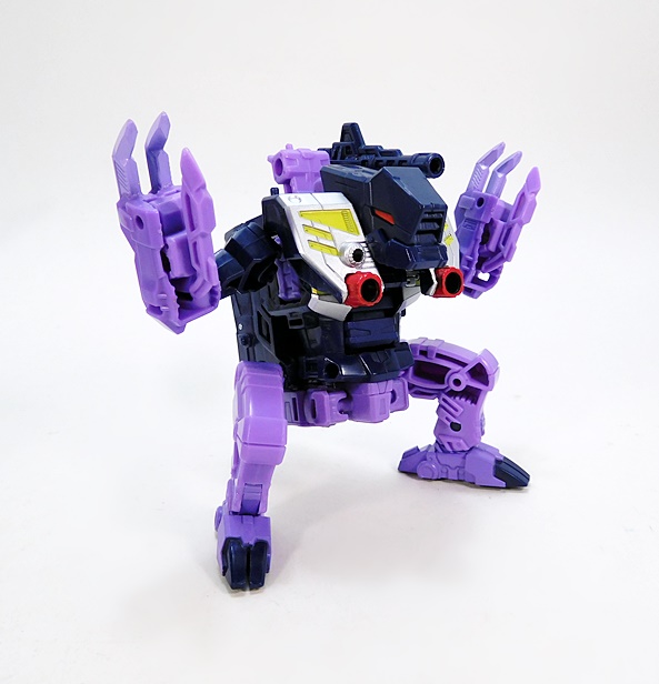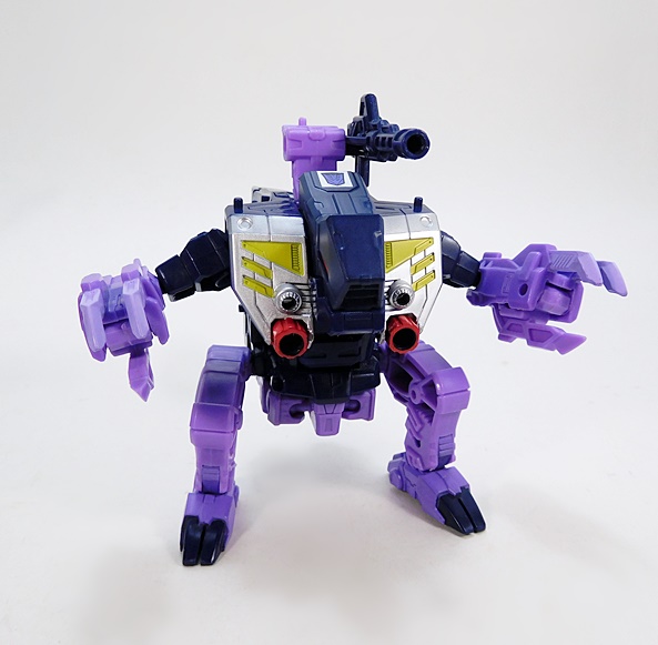 Blot is built off of the same engineering as Rippersnapper, and just like Cutthroat and Sludge, he borrows some parts but the majority of the figure has been reworked to make Blot his own bot. With that having been said, I really dig Blot’s overall profile. He’s got a big, beefy chest, powerful forearms equipped with slashing blades, and some beast legs folded up on his lower legs that adds to his bulk without being too kibble-y. The back of the package refers to him as a foot-soldier and that’s exactly what his robot design conveys to me. To me, this is a no-nonsense Decepticon trooper through and through.