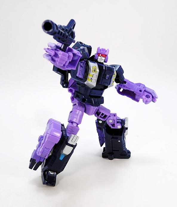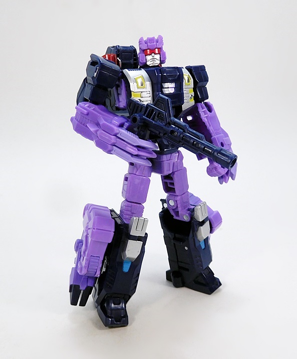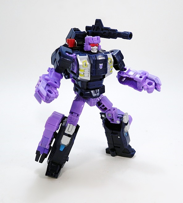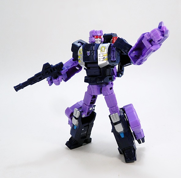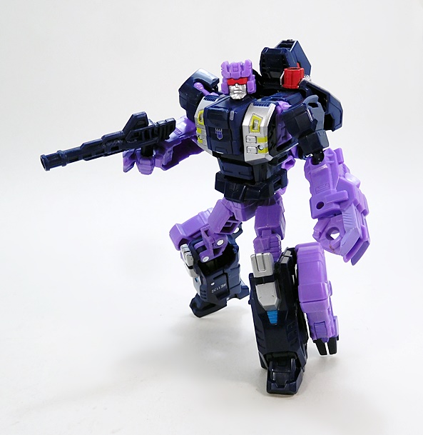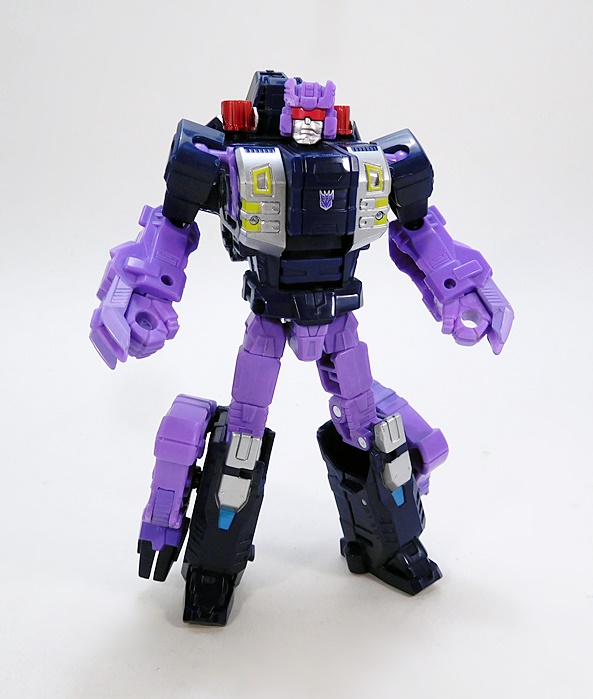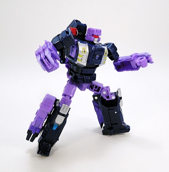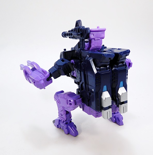 Blot’s deco is absolutely superb. The blue is so dark that it almost might as well be black. Add the purple and you’ve got the makings for perfect Decepticon colors. The additional silver, yellow, and metallic blue paintwork gives the figure a great premium finish that we’ve been seeing in a lot of these Deluxe Class figures recently. As much as I loved the Deluxe figures in Titans Return, the early releases suffered from a severe lack of paint apps, whereas Hasbro has been killing it with the paint on a lot of these Power of the Primes figures and it is much appreciated.
