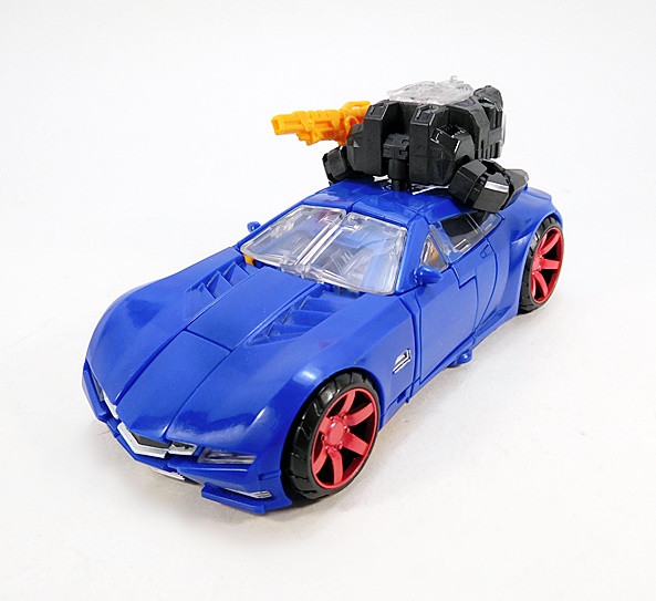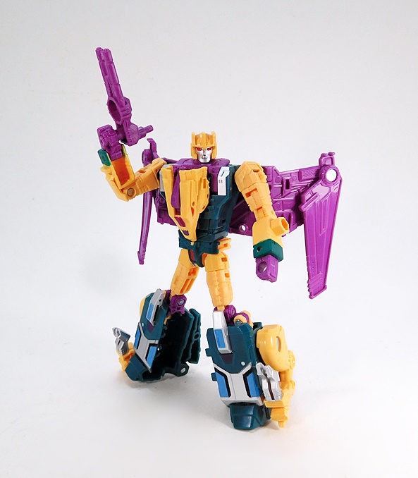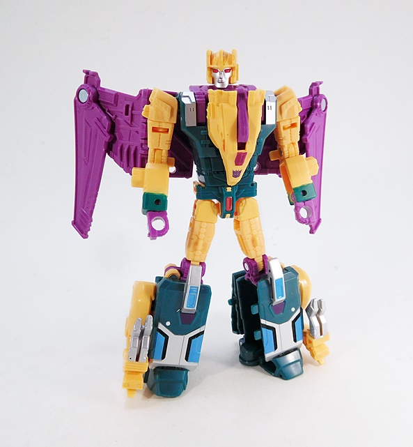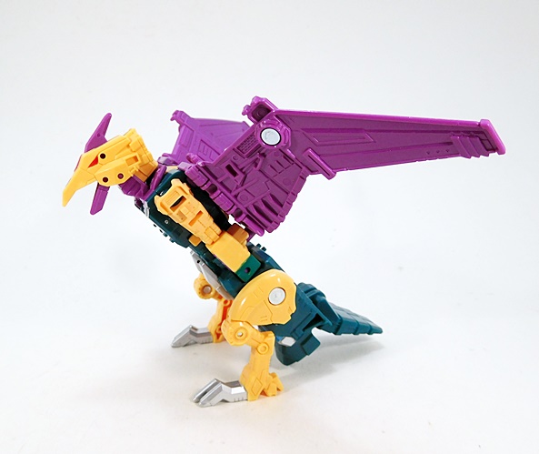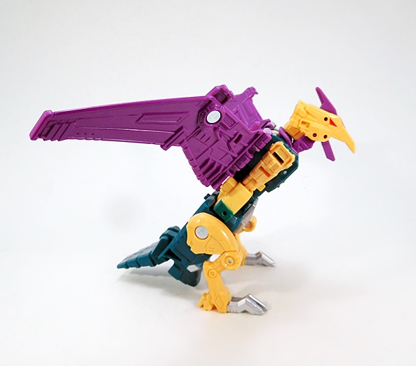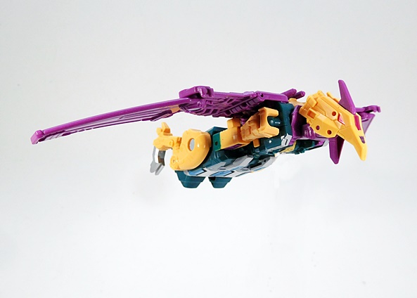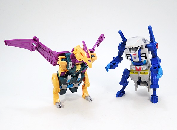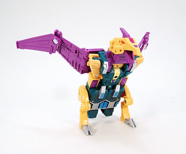 There’s a protrubance behind his head that allows you to plug in his slime gun. I just wish he came with two so I could double it up and get a little symmetry going. The deco here is pretty much the same as his robot mode, which is a good thing. One irritating thing… both Blot and Rippersnapper have rub signs in their beast mode, but they omitted it from Cutthroat’s. Go all in, or don’t do it at all, Hasbro!