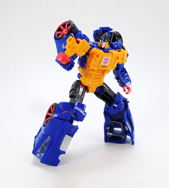 With some shared engineering and parts, Blot’s transformation is a little like Rippersnapper’s, but there’s enough new here to make him feel unique and the end result is this wonderful little ball of WTF. It’s like a cross between a slobbering fantasy beast and something out of MechWarrior and I love it to pieces. I especially dig how folding in the robot hands rolls out the third claw for his beast hands. The boxy head is nestled between two silver and yellow armor plates and there are little nozels, which I presume are designed to deliver some kind of hot death to Autobot fools.