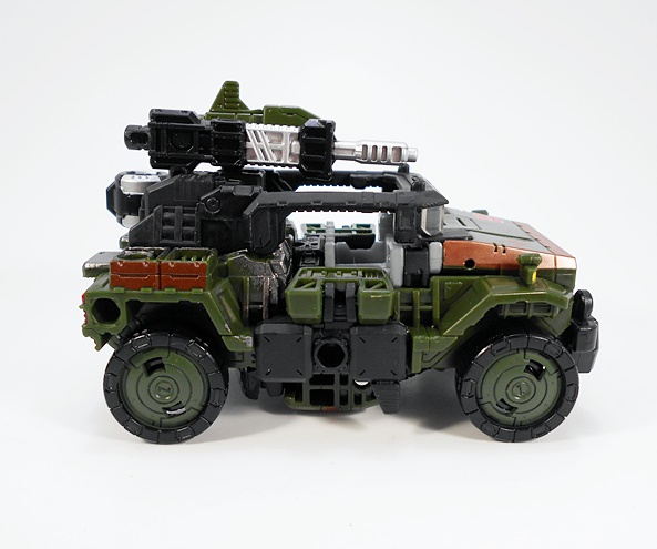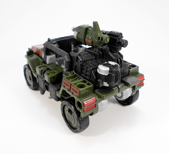 OK, so there’s definitely some stuff to love here, but I’ll confess I would have liked something more akin to Hound’s traditional Jeep alt-mode. The front actually looks fine, but the rest of it is ugly as sin. It looks like a Jeep bumped uglies with a Hummer and this is what resulted in that union. I don’t hate it, but overall I’m not digging it all that much either. That’s not to say that there isn’t some good stuff going on here. The sculpt does feature some nice attention to detail, they even managed to get something that looks like seats in the driver area, and there are peg holes all over this thing, so you can load it up with weapons. Hmm… I wonder if that’s some kind of running theme for Siege?