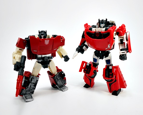 And before wrapping up, here’s a quick comparison of Siege Sideswipe with the old Universe version. Honestly, I think I still prefer the Universe version’s auto mode over this one. It’s just cleaner and shows a lot less seams. As for the robot modes, I’m going to give the nod this new figure. I still love the Universe version, I think it’s a great looking figure with some neat engineering, but there’s something about how simple and elegant Siege Sideswipe that I just love. He’s also more fun to play with.