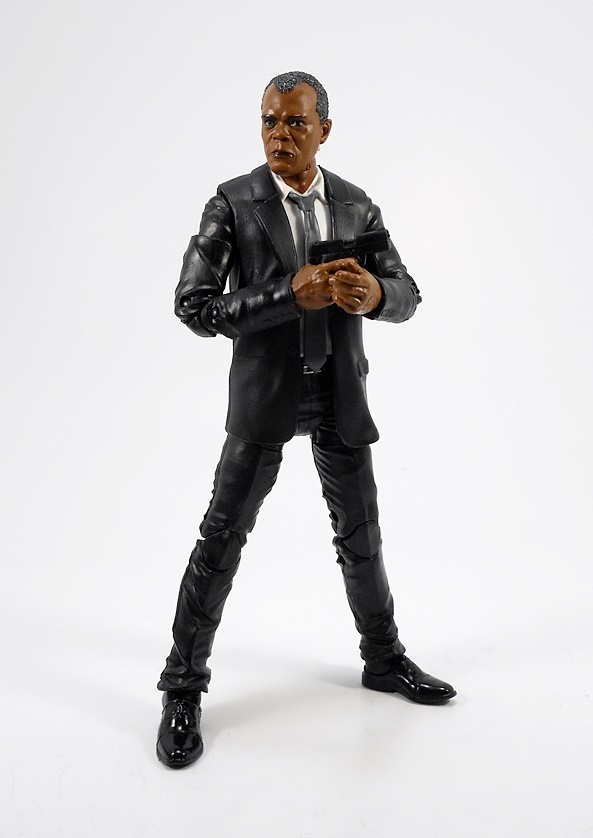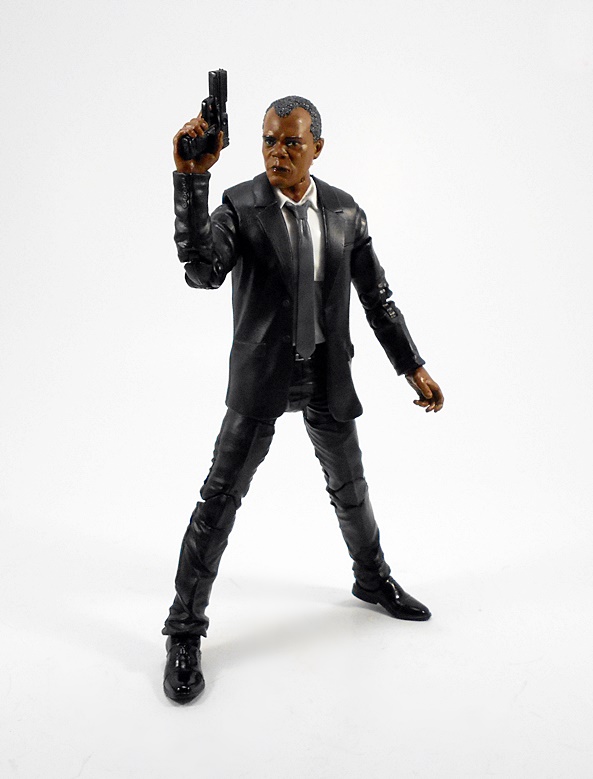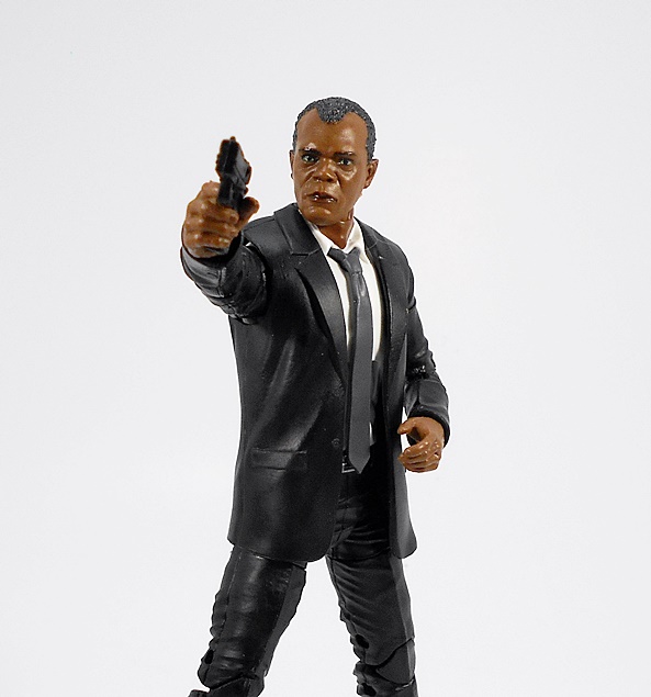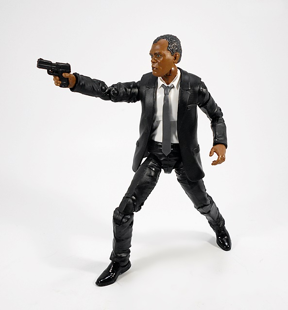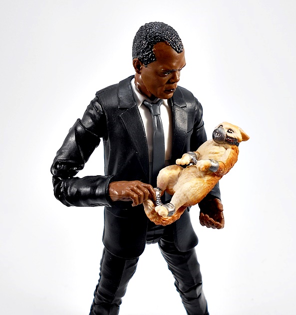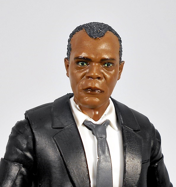 The head sculpt features a pretty good likeness to younger Sam Jackson, which depicts Nick Fury before he lost an eye. The painted details on the face seem to be actual paint and not the printed method they’ve been using lately. Either way it looks OK. My only real nitpick here is that the jointing of the neck to the head looks a bit odd when viewed from certain angles.