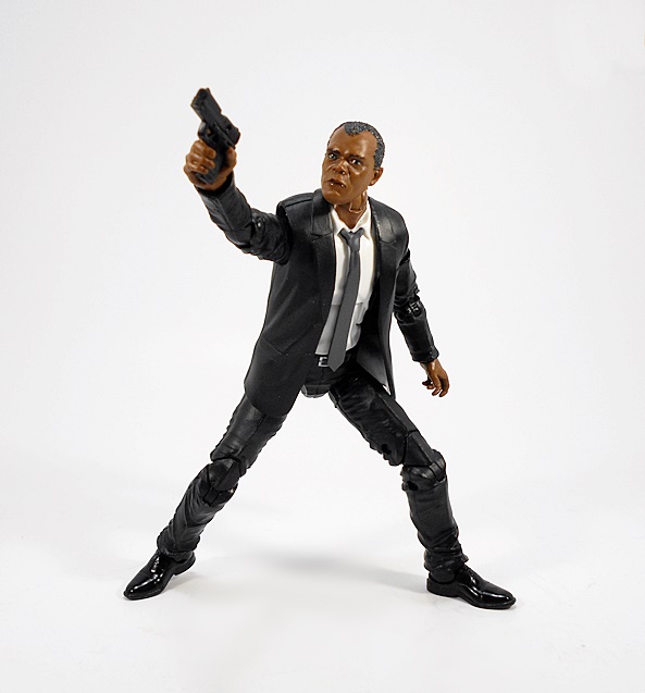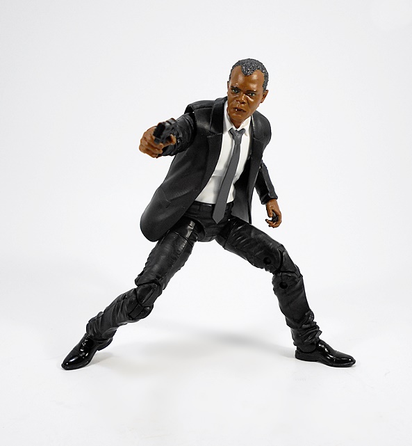 Articulation is standard stuff and actually identical to the suited-buck used for Coulson. The legs are ball jointed at the hips, have swivels at the thighs, double hinges in the knees, and both hinges and lateral rockers in the ankles. The arms have rotating hinges in the shoulders and wrists, double hinges in the elbows, and swivels in the biceps. There’s a swivel in the waist, a ball joint under the chest, and the neck is both hinged and ball jointed.