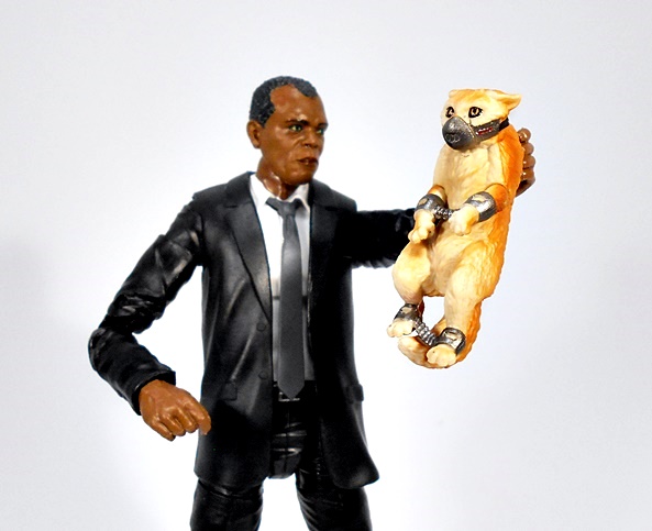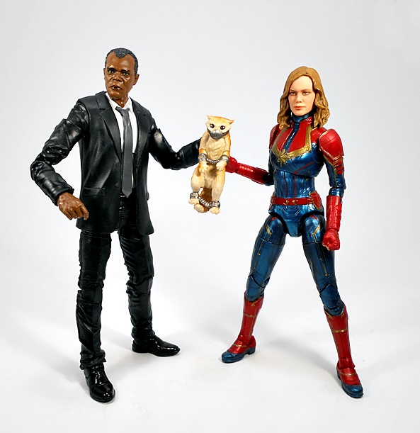 Fury also comes with one of two versions of Carol Danvers’ “cat,” Goose that are included in this wave, and I’ll defer from clarifying those quotes around the word cat to avoid any specific spoilers. Although as you can probably guess by the accessory, this isn’t your ordinary domesticated feline, because the little guy is locked up in restraints. The scruff of his neck is sculpted specifically so that Fury can hold him by it with his left hand. It kind of makes out like Fury and Goose aren’t going to get along, but seeing him playing with Goose in the trailer sets my heart at ease.