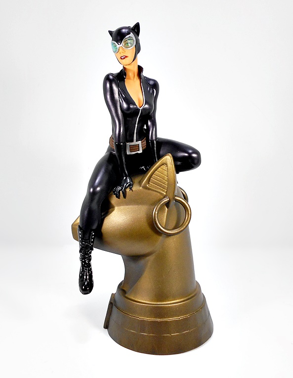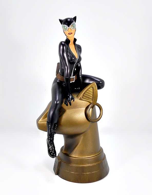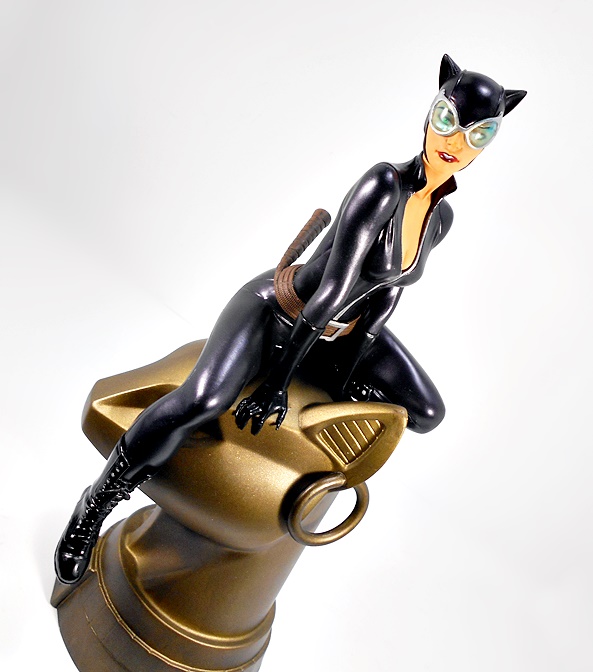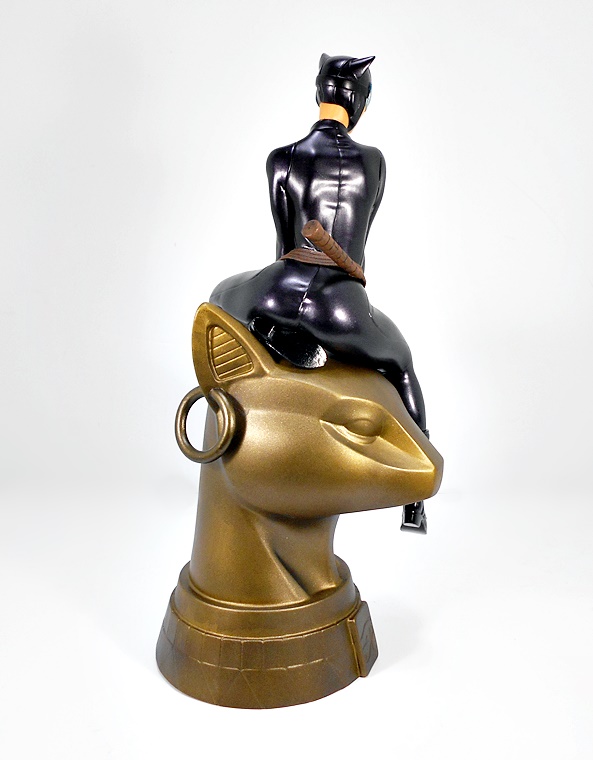 And this is a case where the composition and overall style had me mashing the pre-order button the moment I saw pictures in the solicitation. Sure, when it comes to Catwoman I’m an easy mark, but having her perched on the giant Egyptian-styled cat-head turned my head in a big way. She sits on the top of the statue with one leg bent under her and the other dangling down, while leaning slightly forward on her hands, both clutching at the statue in a very cat-like manner. I’d like to imagine that she just crept her way into the skylight of the Egyptian Wing at the Gotham Museum of Antiquities, pounced down onto the head of this giant statue and is now sizing up the various lasers and security cameras that stand between her and whatever coveted bauble she happens to be after. There’s something to be said when the composition can send my mind to working up context for the figure and that’s exactly what happened here.
