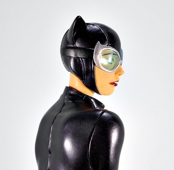 Despite being a fairly modern look, Catwoman’s costume gets by with a fairly low amount of detail, and that is in no way a slight against the sculpt. Her body suit relies on some neatly sculpted stitch lines and it’s smooth contours accentuate her curves and muscle tone in all the right places. The finish looks black, with just the right amount of gloss to make it look like leather, and under the right light it can give off a purple sheen. The front of the suit features a silver zipper, which is pulled down just enough to show off her kittens, and that low plunge is balanced out by a high collar.
