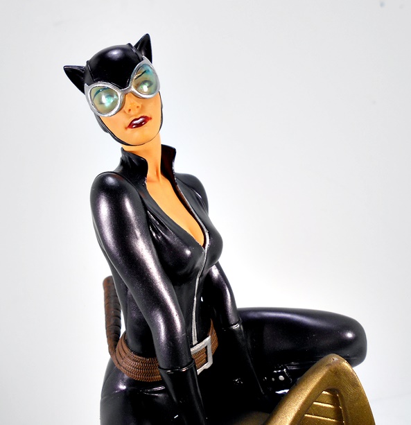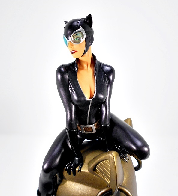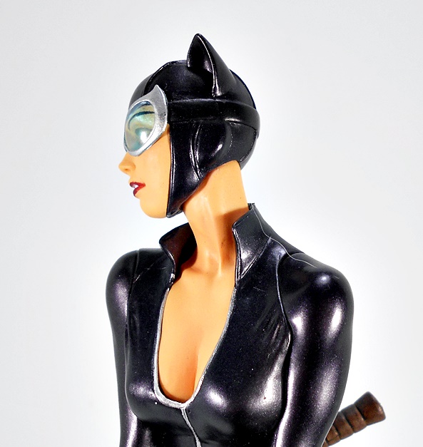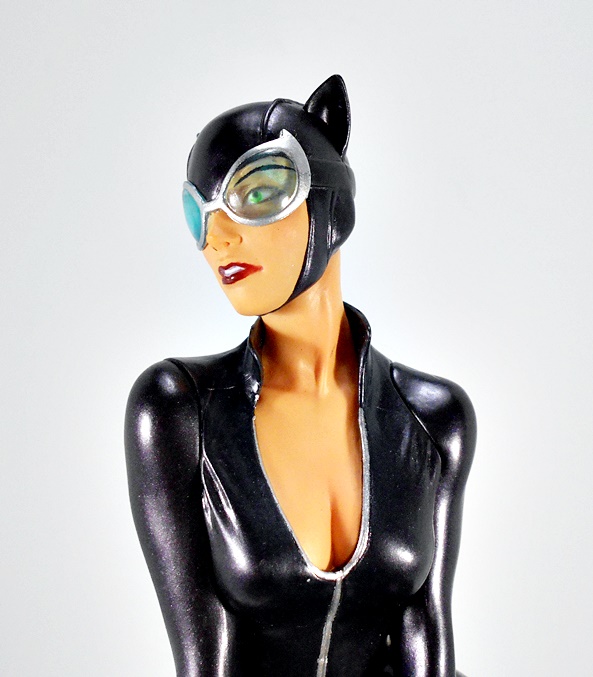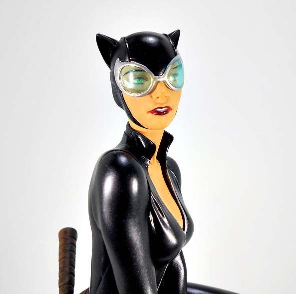 And that brings us to the portrait, and DST did a fine job on it! I love the way the mouth is sculpted with the lips slightly apart to show off her pearly whites, her nose is perfect, and while I don’t really associate this likeness with any one artist, I still think she looks great. The cowl is sculpted with the same stitch lines we see in her suit, and the paint lines between the cowl and her skin are clean and sharp, even around the chin strap. One of the things that particularly impresses me here are the lenses in her goggles. They’re remarkably clear for a piece in this price range, showing off her green eyes. Hell I think the lenses here look every bit as good as the ones on DC Collectibles’ second Cover Girl Catwoman statues, which retailed at more than twice the price.