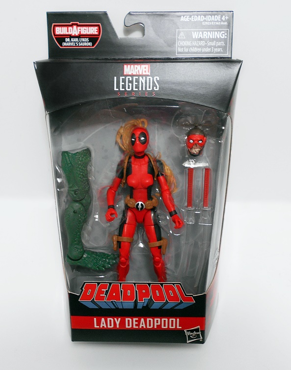 It’s time again for Marvel Monday and today I stuck my true-believing meat-hooks into a big box of unopened Legends figures and pulled forth none other than Lady Deadpool! The fates were good to me, as she’s the first figure I’m opening from the Sauron Wave, a Build-A-Figure that I am rather anxious to put together! Definitely more anxious than I am for this figure.