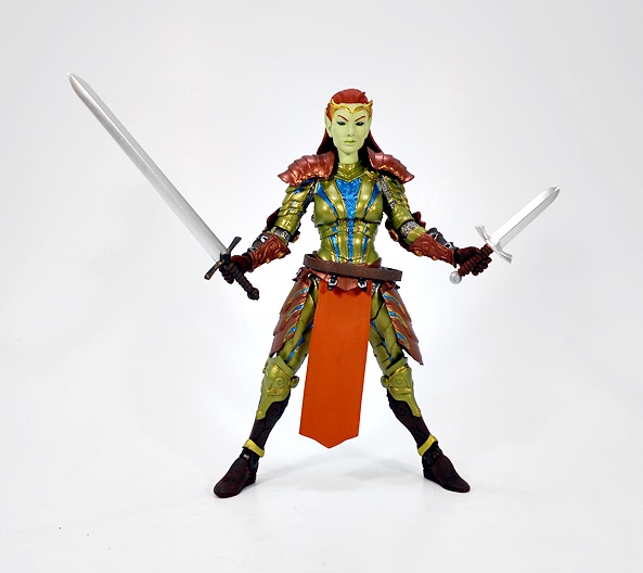As great looking a figure as she is, Myria comes up really short when it comes to her accessories. For starters, she’s got the usual basic sword and dagger, which we’ve seen too many times to count now. And yes, this is the point where I say that no matter how many times we see these, I still love them. The problem is, these are the only two weapons she comes with, so recycling the most common ones feels like a poor choice. I think she would have been better served getting a repaint of that curved dagger and scabbard we’ve seen a few times already. Or to go one further, since her bio points out that she possesses magic abilities, maybe a staff would have been a good idea. And I’m not even talking about instead of, because by every accounting, Myria’s accessory count is low.