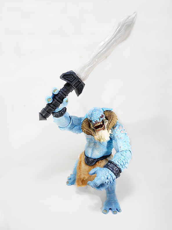 Besides the heads, the other unique feature of each Troll has been their massive weapons, and this time we get a real cool ice sword. This unique weapon features a heavy hilt with some chunky decorations and painted to look like it’s fashioned from ancient iron. The translucent ice blade protrudes from the hilt and swells near the tip. It’s far more sophisticated than the brutish weapons we’ve seen with the previous Trolls, but I still dig it a hell of a lot. The blade is a beautiful effect and it actually comes separate from the hilt.