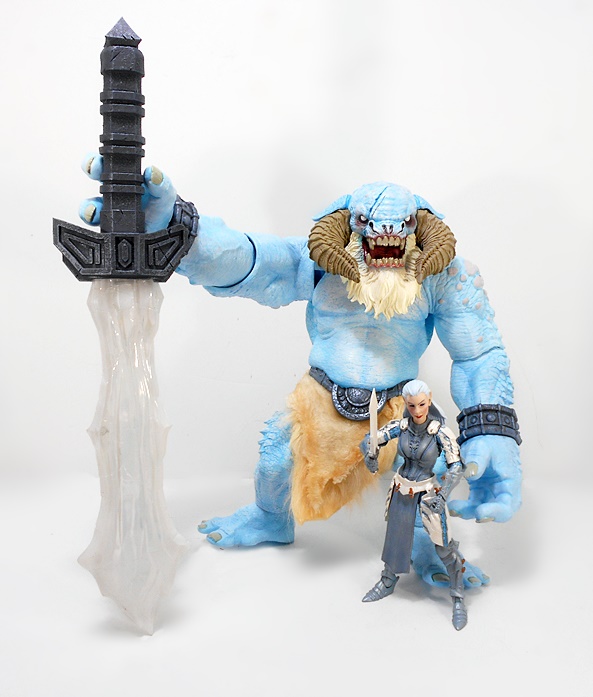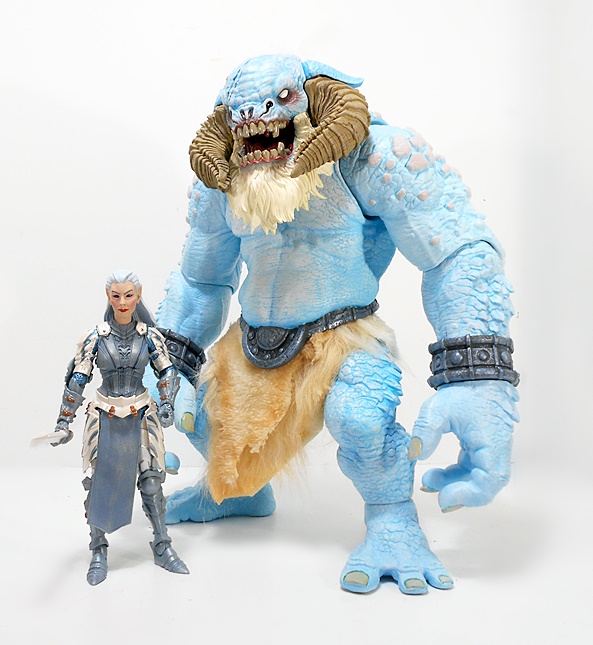 And yes, these guys are big. So big, I’d be remiss if I didn’t toss in a comparison shot to show just how much these Trolls tower over the regular Mythic Legions figures, so here’s a shot of him with fellow Soul Spiller release, Thallyn Frostbow. Yeah, I don’t usually include figures that I haven’t reviewed yet, but I’ll be getting to her shortly.