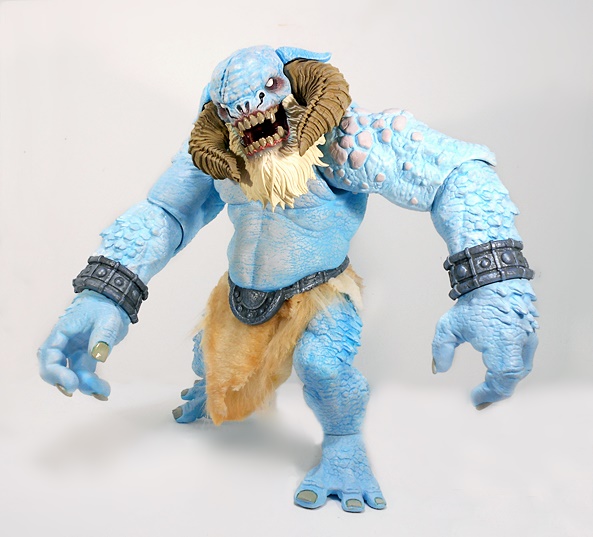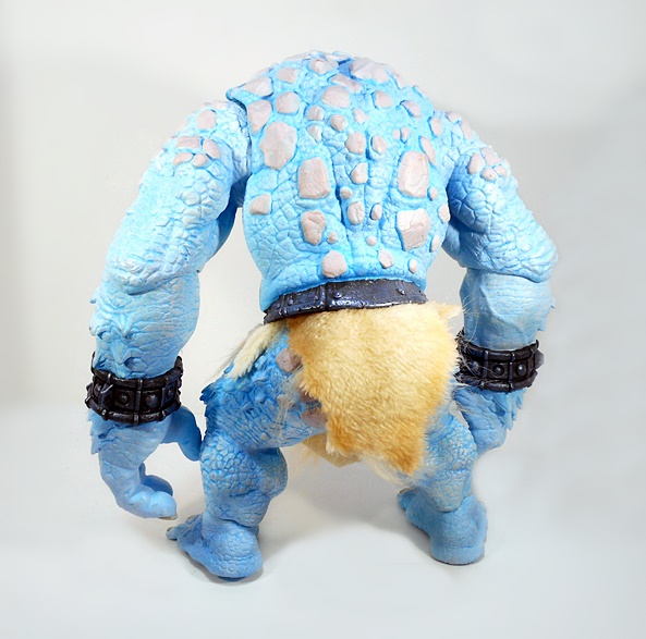 Obviously, this big guy relies heavily on the coloring to make him pass for a frosty Troll, and I have to say the coloring here is quite nice. The skin is a very light blue with some white wash to give him a distinctive snow and ice flavor. As with the other Trolls, the wash helps bring out some of the beautiful details in this sculpt, from the sinews and veins in the arms to the glossy finger and toenails. I’m still suitably impressed by the detail on display, even after buying this body three times now. Granted, some aspects of the sculpt work better here than others. I think the jagged scales on the arms and legs work well for an Ice Troll, as do the crevices, which resemble cracked ice. while the stony plates on the shoulders and back, not so much. Maybe if this was the first Troll released, they wouldn’t stand out so much, but by now they really do look like bits of stone that are far better suited for his Forest and Stone cousins. Yeah, I’m kind of nit-picking here.
