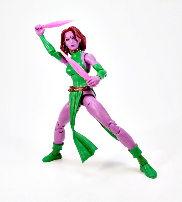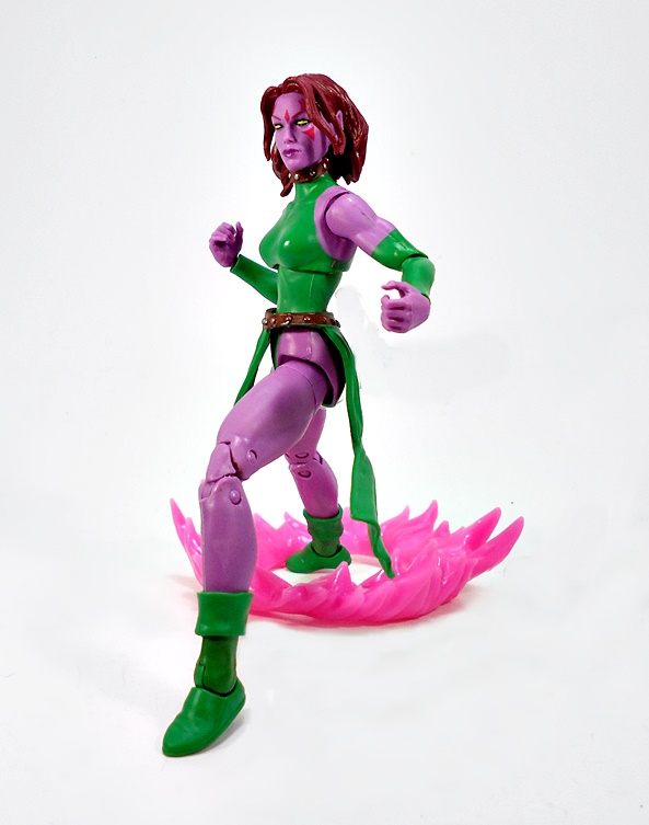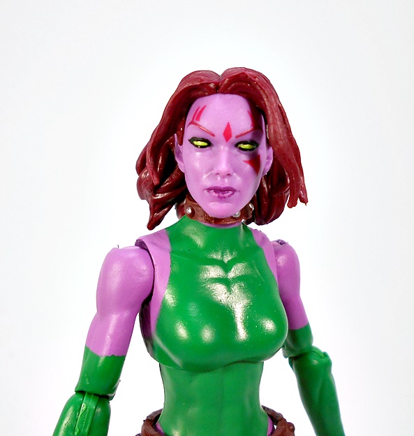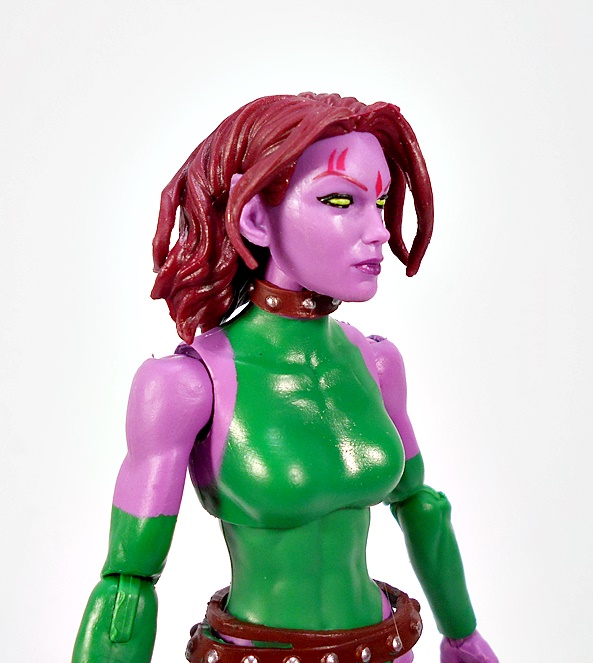 And I certainly have no complaints regarding the head sculpt. She’s definitely a Mutant hottie, with well defined features, her ears have points, and I love the way they sculpted her hair, giving the portrait a great sense of dimension and character.The markings on her face are sharp, and the thick eye-liner around her squinting yellow eyes looks great. Bravo on the portrait, Hasbro!