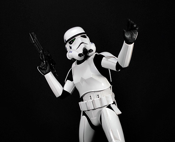 And boy is this figure simple! And that is in no way meant as a slight, because it is indeed almost refreshingly simple. Reviewing Hot Toys figures is often intimidating for me. They are complicated to set up, sometimes difficult to handle, and giving them their proper due is seriously time consuming. Costumes need constant adjusting, little bits and bobs fall off during shoots, and I’m often afraid that I’m going to break things. But none of that is true with my new Stormy! And here’s where I should also point out that even with as many goddamn Stormtrooper figures I’ve owned over the years, I’m still no expert on the particulars of their armor. This looks great to me, but there could be some inaccuracies that I’m not seeing. I also do not own the previous Hot Toys Stormy, so I can’t do any in depth comparisons on the improvements here. So why should you even keep reading? Hell, I dunno. Just let me enjoy my new figure.