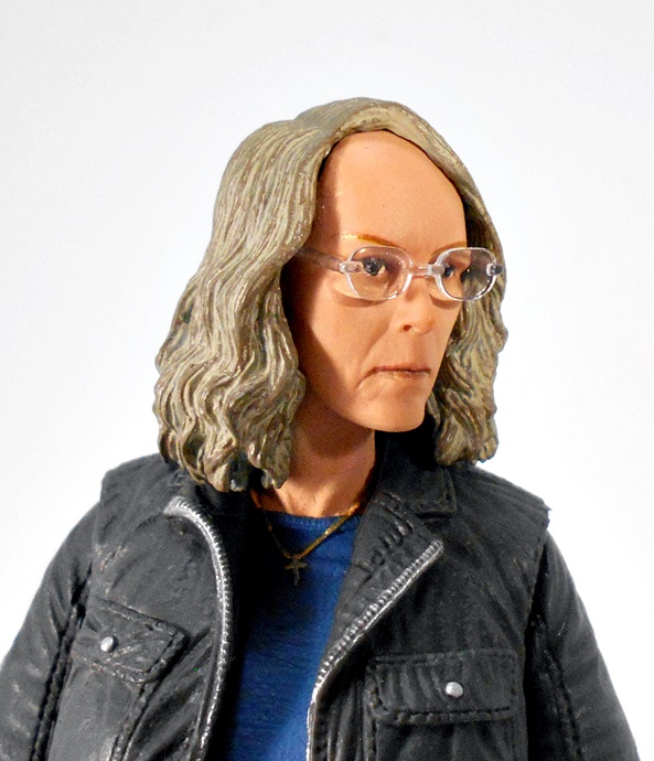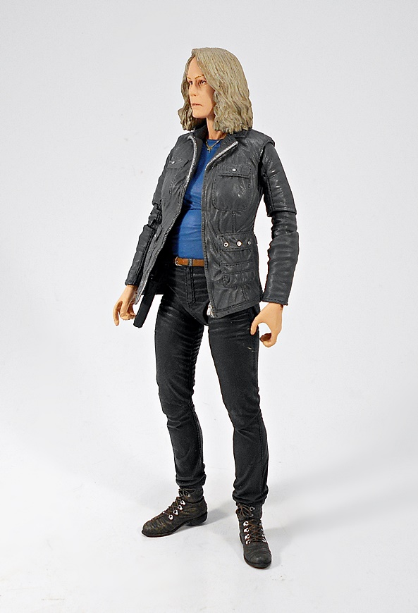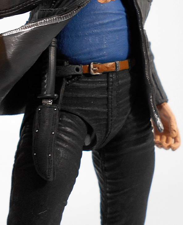 The helmet sculpt also looks excellent, but here’s where I will once again defer to experts, who may be able to point out all kinds of things wrong with it. For me, the detail is all there from the blue vents on the sides to the breathers on the front. I especially like the green tint on the goggles. It’s subtle enough, but in the right light it looks brilliant. The neck area under the helmet also has a ribbed rubber gorget over the cloth bodysuit.