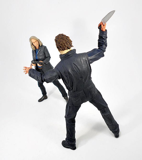 As simple as the figure is, it’s still an underlying articulated buck that’s actually wearing the armor, and that obviously sets it apart from most of the other Stormtrooper figures out there. The figure is first dressed in a very soft fabric bodysuit, which can be seen in the joints and between the armor plates. This is a big departure from the leather-like bodysuit that Hot Toys First Order Stormtroopers wear. The result is that the underlying suit doesn’t really hinder the articulation at all, even though the armor plates themselves in some cases do. The armor pieces themselves consist of upper and lower legs, sleeves for the forearms and biceps, shoulder pieces, a codpiece and a butt plate, a wrap-around for the abdomen, a chest and back plate, and of course the helmet. The boots are sculpted plastic and the armor pieces on the backs of the hands are sculpted as part of the hands. And you do indeed get a nice assortment of hands, including a set of weapon hands, fists, relaxed hands, a “stop” hand, and a hand designed to cradle the blaster. The armor pieces have a nice glossy finish to them, and are some very subtle weathering marks here and there.