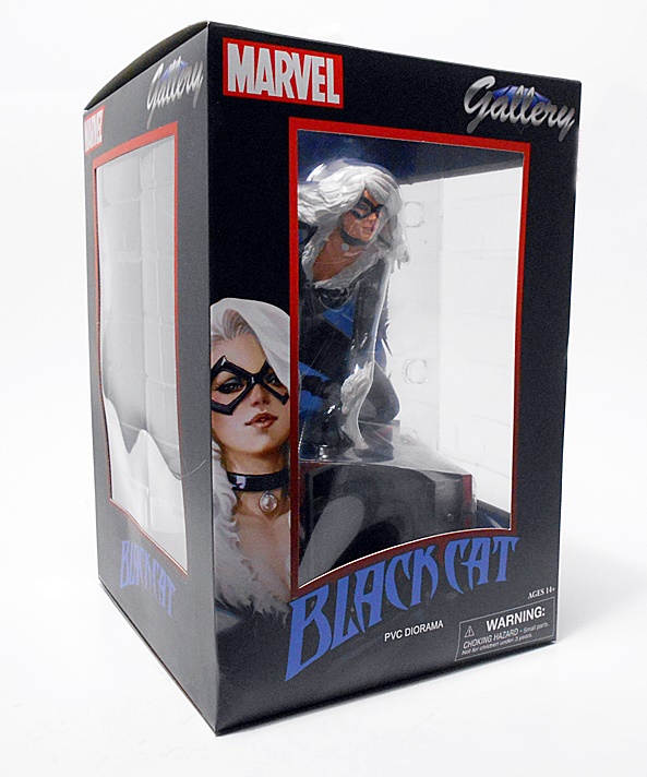 And here she is out of the box, on the shelf, and looking pretty fabulous. This is definitely one of the most unique entries to the Marvel Gallery line, as most of the releases tend to focus on the figure with the base seeming like an afterthought. But not here! Black Cat crouches on one knee atop a Spider-Man themed safe, presumably one that she just cracked open. Perhaps Web Head himself has entered the room, because she’s frozen in what could be a defensive stance and ready to pounce. Let’s have a look at Felicia first!