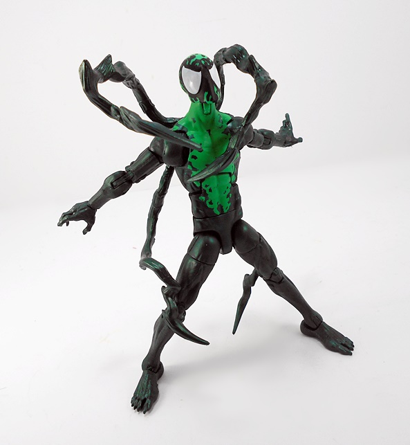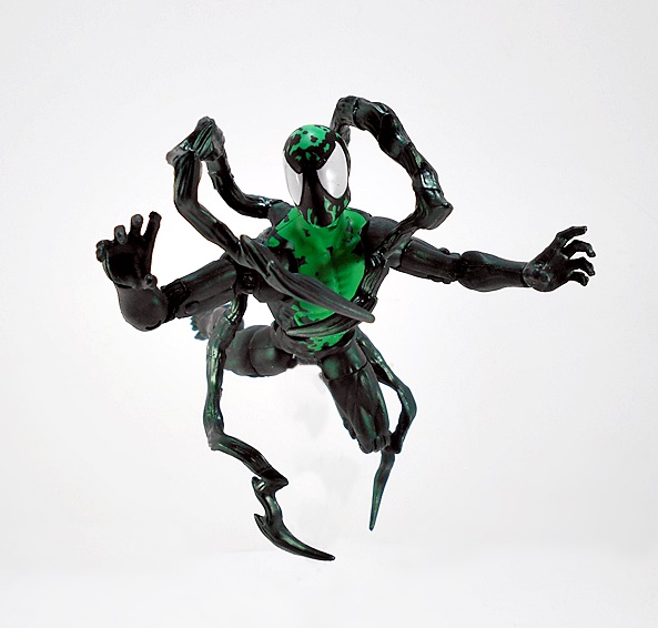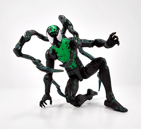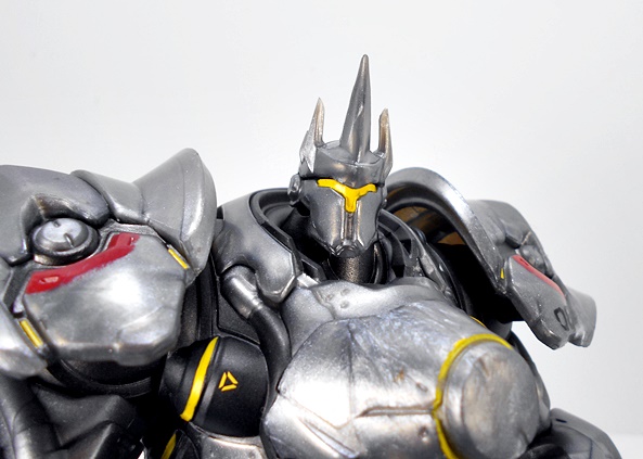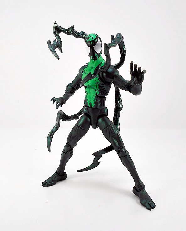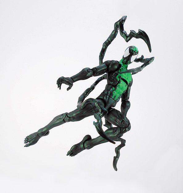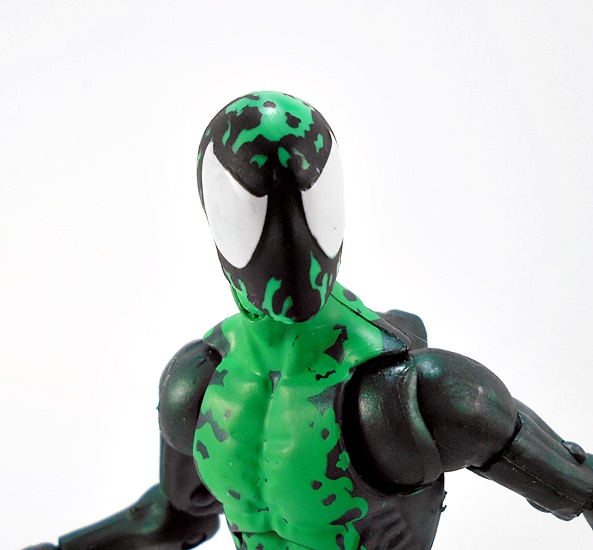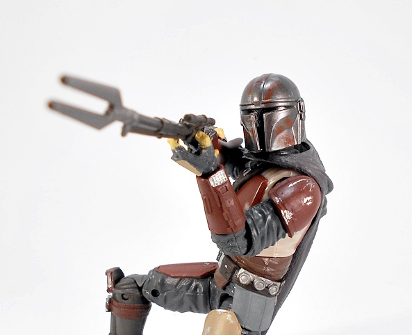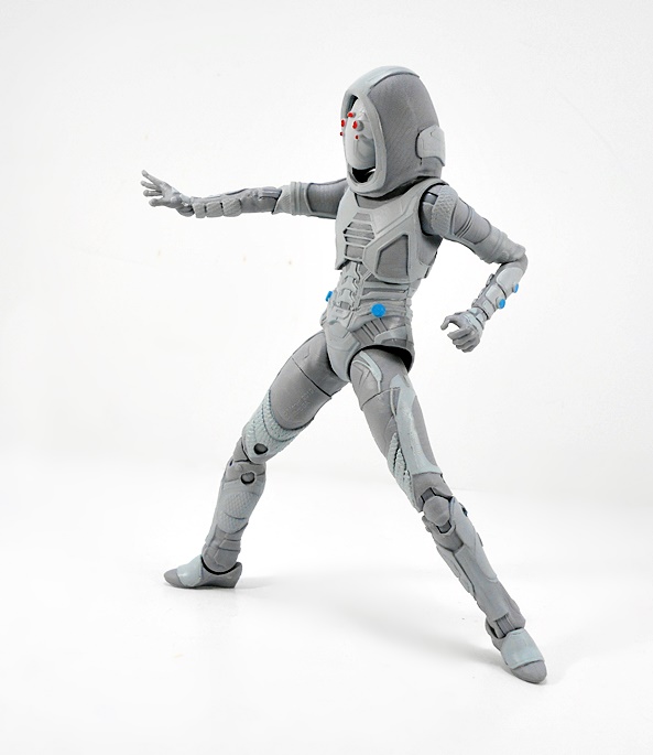 The masked head is a separate piece from the hood, allowing for it to articulate fairly well. The face mask is mostly featureless, except for the red “eyes” which pays homage to the comic version of Ghost. And like those blue points on the body, the red paint here stands out beautifully against the otherwise colorless figure.