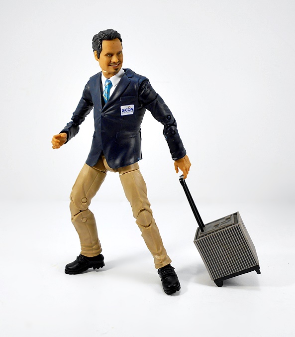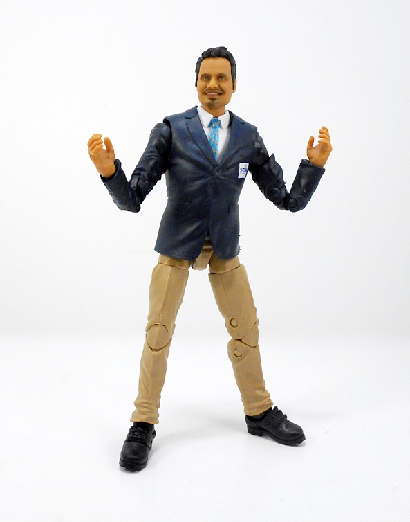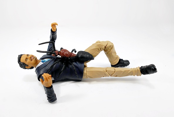 There aren’t any surprises in the articulation, except maybe that his legs use ball joints instead of rotating hinges. The rest of the legs feature swivels in the thighs, double-hinges in the knees, and both hinges and lateral rockers in the ankles. I actually bent my figure’s left leg a little too far and thought I snapped it at the thigh swivel, but it turns out it just plugs right back in, similar to a BAF connection. The arms have rotating hinges in the shoulders and wrists, the elbows have double-hinges and there are swivels in the biceps. He can swivel at the waist, there’s an ab-crunch buried under the jacket, and the neck has both hinges and ball joints. I didn’t really need my Luis figure to be super articulated, so what’s here is more than I could have needed or wanted.