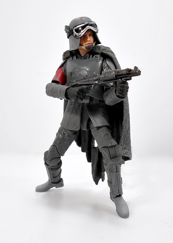 Serving with the 224th Imperial Armored Division, Corporal Han Solo in his Imperial Mudtrooper outfit is a figure that I was anxious to get my hands on. I loved the whole sequence in the film and I really dig this particular uniform. It’s a nice blend of familiar Imperial fashion call-outs with some new stuff thrown in, and Hasbro put an exceptional amount of work into making this figure something special. Here it is stripped down to the basics with the familiar cuirass previously seen worn by the AT-AT Commanders. The backside of the armor features a sculpted backpack sort of thing with some detailed panels. The cuirass is not removable and is sculpted over what looks like a fairly typical Imperial Officer’s uniform tunic, but with added shoulder armor and bicep armor, with the right bicep painted red. The high boots feature a liberal dusting of what is probably supposed to be mud, but it actually looks like it would work well for snow or ash. In addition to the dirtied up boots, there’s some absolutely lovely weathering applied to the cuirass. Even if this was all there was to the figure, I’d have been happy, but there’s plenty of gear to add on to him. But before getting to that…