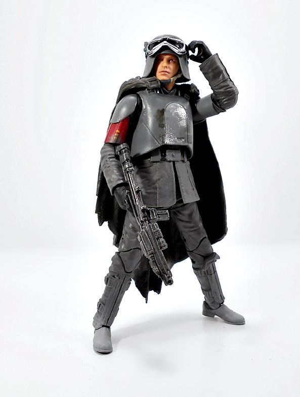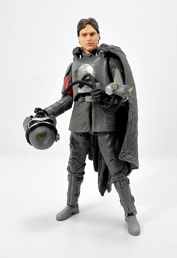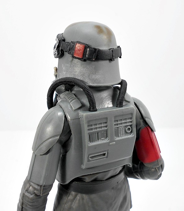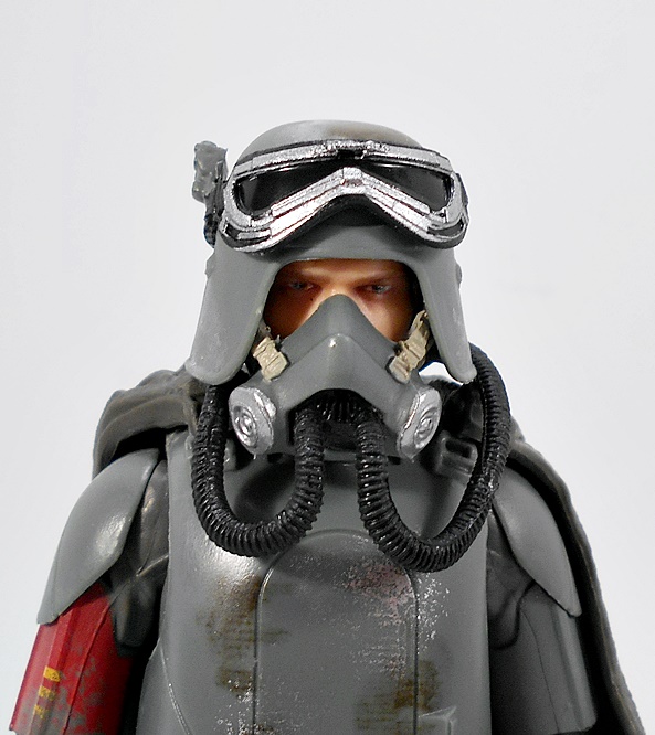 The helmet fits perfectly and includes a chin-strap. The breather mask has two partially sculpted straps that hold it on simply by friction and the tubes run behind the head and plug into the holes on the top of the backpack. Finally, the goggles can be worn up on the helmet or down over the eyes. One of my frequent complaints about the Black Series is that it doesn’t often make use of the larger scale, but here’s a figure that really does. I’m sure all of this could have been done in the smaller 3 3/4-inch scale, but I don’t think it could have been quite as well executed as it is here. I mean, it would have been much easier to just sculpt the goggles, helmet, and mask all as one piece, but I’m happy to see Hasbro rose to the challenge here.