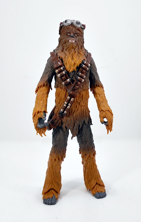 I actually don’t have a whole heck of a lot to say about Chewie here. I was actually going to pass on this figure, but I found it on sale and I decided I needed him to stand beside young Han Solo. It seems to borrow the same body sculpt as the original Black Series Chewie, but with a very different paint job. Gone is the more uniform brown and in its place is a mix of dark brown and light tan. Unfortunately, I don’t think the new paint does the sculpt any favors. It looks very basic and the radical differences in color shades makes this look more like an animated version of Chewie to me. Maybe a wash would have helped. Of course, Chewie’s more familiar bandoleer strap is replaced here with the Y-shaped baldric and satchel.