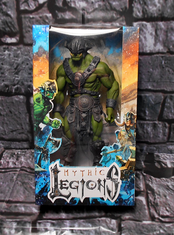 The Ogres are a new class of figures in Mythic Legions and I’ll refer you back to KKurzog, the first one I reviewed, if you need to get caught up. As we saw last time, these big bruisers come in window boxes, which are much smaller than the Trolls’ packaging, but still a lot bigger than your average Legions figure. Unlike the Trolls, these Ogres aren’t rotocast, so they retain all the articulation of the regular sized figures and they are quite hefty too! The packaging is collector friendly and there’s a slip of paper inside warning us to be careful when manipulating those joints for the first time. I haven’t had a problem with any of mine, but it’s obviously something that T4H were concerned about. Let’s get this big boy open and check him out.