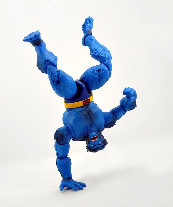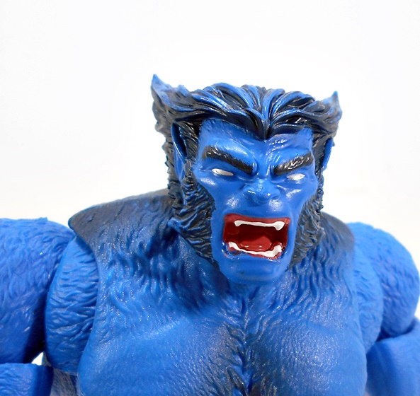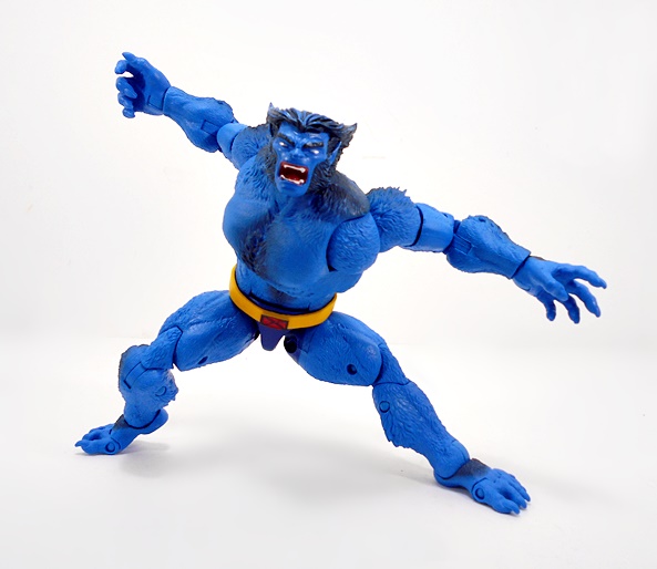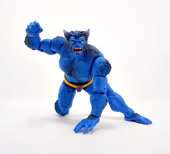 Hasbro went all out on the articulation here, so much so that I’m getting some flashbacks to the Toy Biz days, where articulation often took a front seat to aesthetics. Thankfully that’s not quite the case here, although I will say that with all these points of articulation, I think Beast looks better in action poses than simply standing prone. Nonetheless, lets run down all of those points! His arms have the butterfly shoulder crunches, rotating hinges in the proper shoulders, double hinges in the elbows, hinged pegs in the wrists, and swivels in the biceps. The legs are ball jointed in the hips, double jointed in the knees, and have swivels in the thighs. The ankles have hinges and lateral rockers, and there are hinges in the feet. There’s a swivel in the waist, a ball joint under the chest, and the neck is both hinged and ball jointed. Needless to say, this figure is tons of fun to play around with!