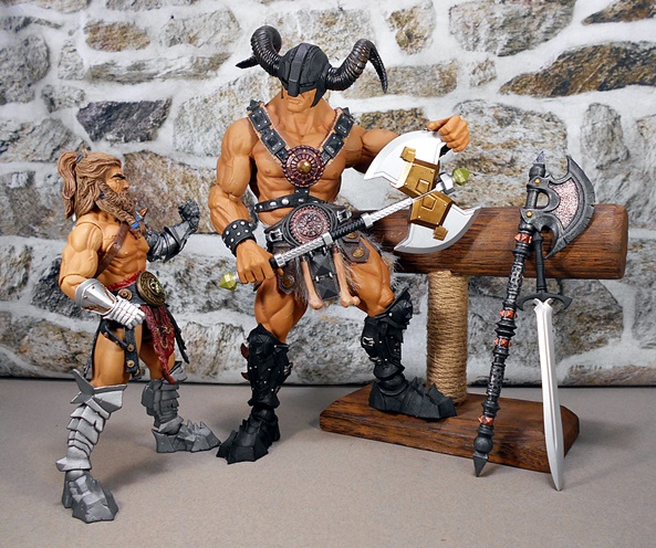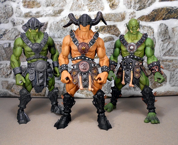 Unlike the big Trolls, which were roto-scoped, mostly hollow, and had more limited articulation, the Ogre body is built with the same articulation as the regular figures, in other words lots of rotating hinges. That makes these fellows highly poseable and pretty damn hefty too. T4H have been including warnings with these figures about the joints possibly being brittle and snapping unless they are carefully worked out. I haven’t really had any difficulties in that area with any of mine.