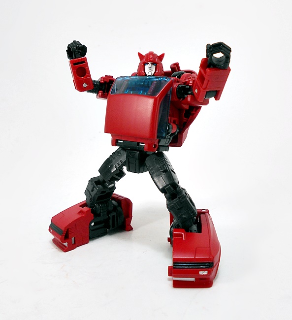 Cliffjumper is sort of faithful to his G1 roots, as he’s still a red sports car, but in this case with a bit of a Trans Am vibe. As such, this alt mode reminds me more of Windcharger than it does Cliffjumper. I was never really sure what Cliffjumper was supposed to be in his original super-deformed Minibot alt mode, but this isn’t it. That’s OK. I don’t mind Hasbro straying a bit with these designs. I do, however, kinda mind when they take a much smaller toy and release it in the Deluxe Class. Yes, Cliffjumper was originally a Mini-bot. And no, this toy isn’t small enough to be what was called a Basic or Scout Class in previous lines, but the size still feels wanting at this price point.