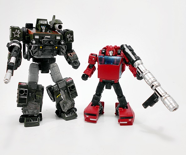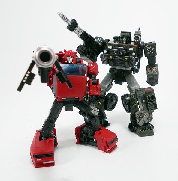 Broadly speaking, I think this is a pretty solid look for Cliffjumper, in that you get the car roof landing on his chest and the front of the car splitting to form the feet. One strange choice was to give him those circular, tube like biceps, which were seen on Bumblebee’s Sunbow model, but not Cliffjumper’s. I know, these aren’t really cartoon-based toys, but it makes me wonder if we’re going to see this toy recolored and remolded as Bumblebee in this line. I also find it odd that Cliffjumper has an Autobot insignia on his car mode, but not his robot mode. And to that point, I really wish they had printed it on his roof rather than his hood, because his robot mode looks naked without it. Oh yeah, and after just two or three transformations, the paint on my figure’s right shoulder is starting to chip.