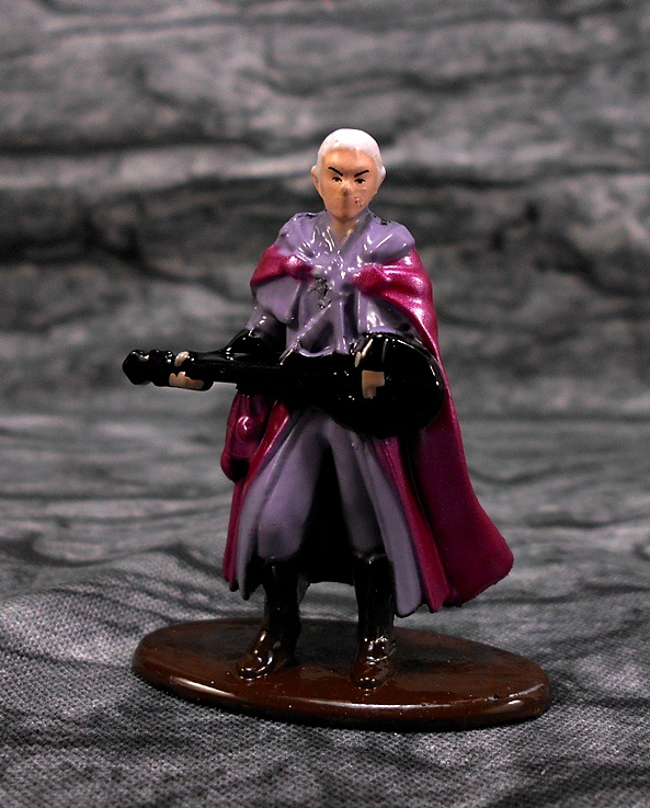 Next up we have the Elf Bard, which I think is overall a lot better than Minsc. The sculpt is still pretty soft, but it conveys the outfit fairly well and he is posed playing his lute. The color palate here is also a bit more varied. The outfit is lavender, the cape is purple, the boots and base are brown, the instrument is black, plus you get his flesh tone and white hair. Sure, he’s probably the least exciting figure in the bunch, but I guess it’s nice to have music while you’re fighting a beholder to the death.
