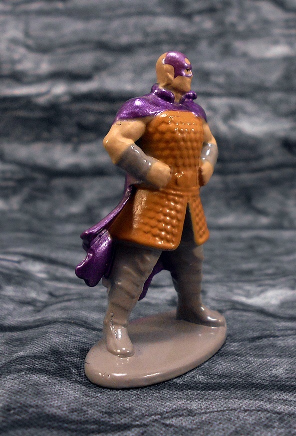 I think the sculpt could have been helped out a lot more by better paint. MINSC is done up in a four color palate, which consists of brown for the hauberk, metallic purple for the cape and face tatts, flesh for his skin tone, and gray for the base, arm bracers, pants and boots. None of the finer details are distinguished, and I don’t mind that for the some stuff like the belt and boots, but it’s a shame they couldn’t paint the sword a different color than his cape. On my worst day I could have painted this figure better, and I was never good at painting these things.