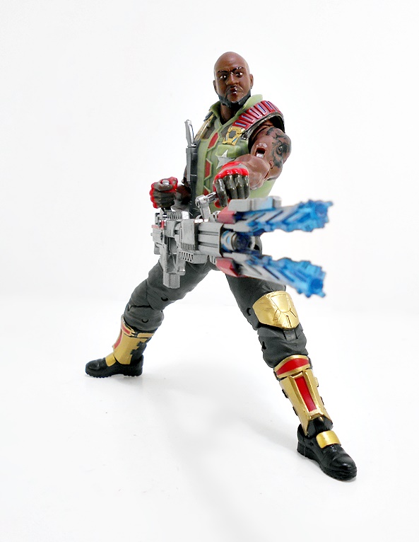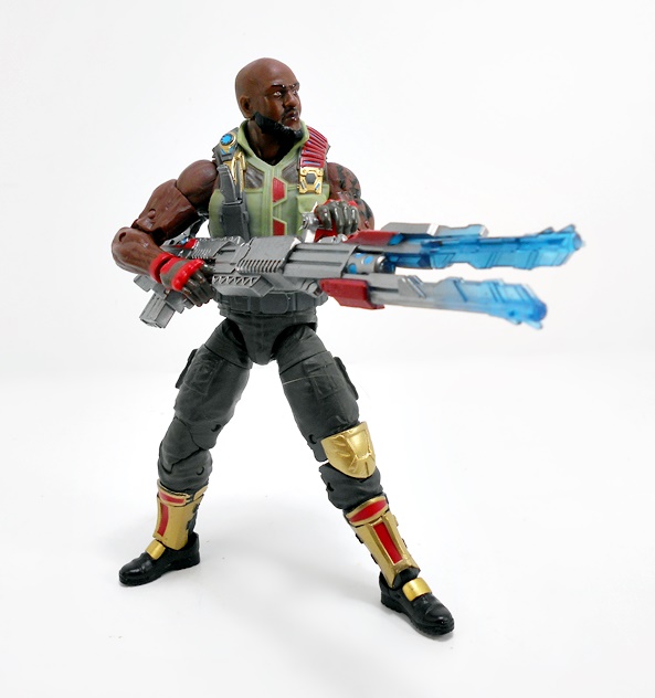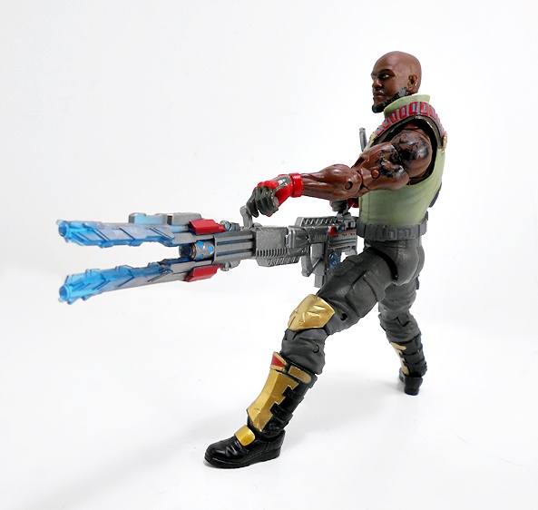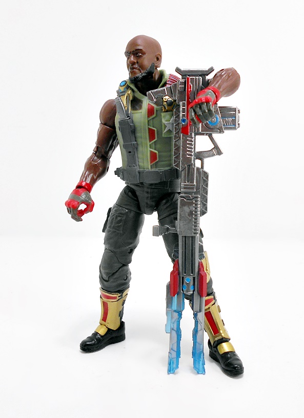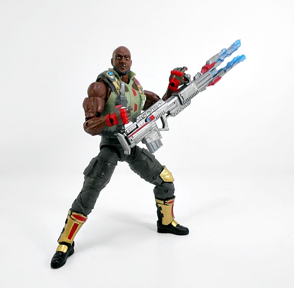 In addition to a little knife for the scabbard in his vest, Roadblock’s main accessory is his giant um… gun. Yeah, this giant laser(?) gun would not have been my first choice as a weapon. Hasbro’s got a ton of really good machine guns in this scale. Hell, they should have just pulled the one last seen with Crossbones in the Marvel Legends Thunderbolts SDCC set. I’m not saying this is a bad looking gun. It’s got plenty of detail, a nice silver finish, and some blue and red paint applications. If you’re a fan of that wacky sci-fi shit that eventually permeated the Real American Hero line, then this might be right up your alley.