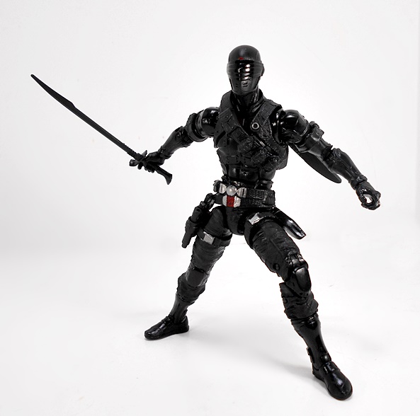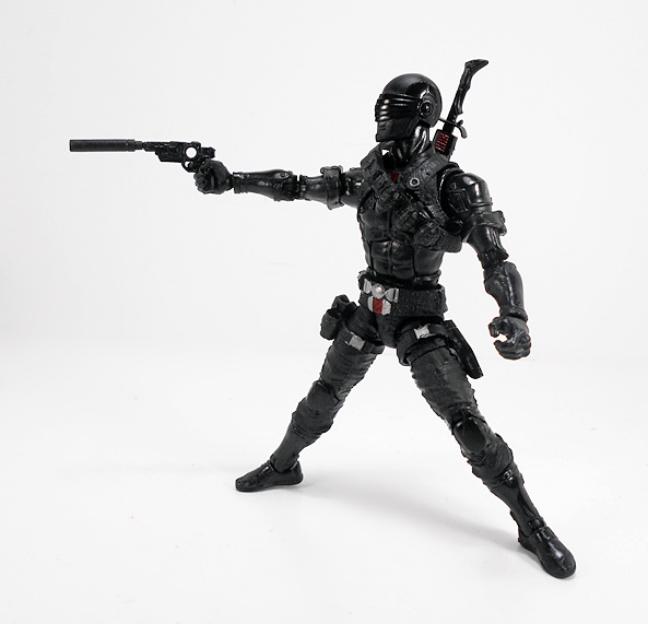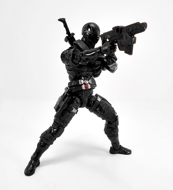 Snake Eyes turned out to be an excellent figure, but I really never doubted that. And remember my blasphemous Commando/Ninja comment? Well, one thing I really dig about this figure is how it strides the line between the two. I can load him up with his backpack and guns if I want him to be a Commando, or I can strap a sword on his back and make him a Ninja. Which brings me to my only real gripe here is that I wish he came with his old school explosives pack, because when I was a kid playing with him, he was constantly using that to blow up Cobra installations and vehicles. I used to stick it to HISS tanks with a little dab of silly putty!