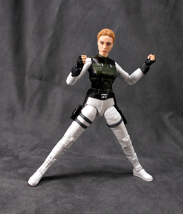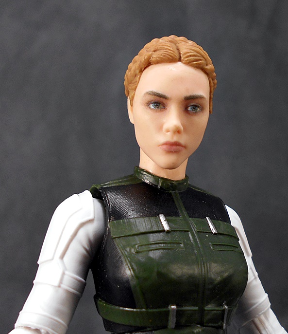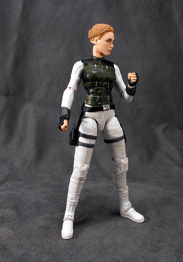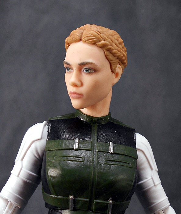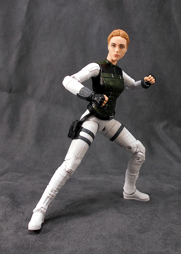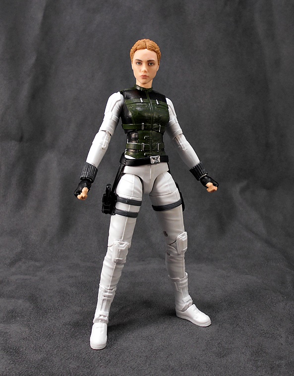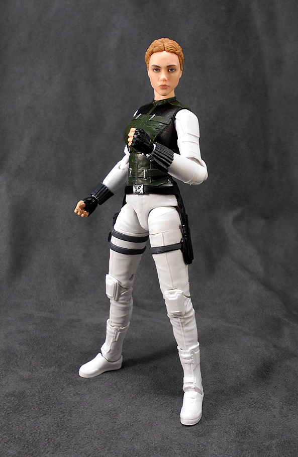 The head sculpt here is excellent. It’s not only a great likeness to Florence Pugh, an actress I’ve never even heard of before now, but there’s certainly a resemblance there to Scarlett Johansen as well, making me wonder if they aren’t supposed to be actual sisters in the film. I’ve never read anything that depicted them as blood relatives in the funnybooks, but if the push in the MCU will be to have Yelena take up the mantle as the new Black Widow, I wouldn’t be adverse to the MCU making that connection. Ah, but maybe that’s just me being sentimental. Anyway, the sculpted hair on this portait is especially well done, although the drawback is that it makes the neck joint extremely obvious from the back.