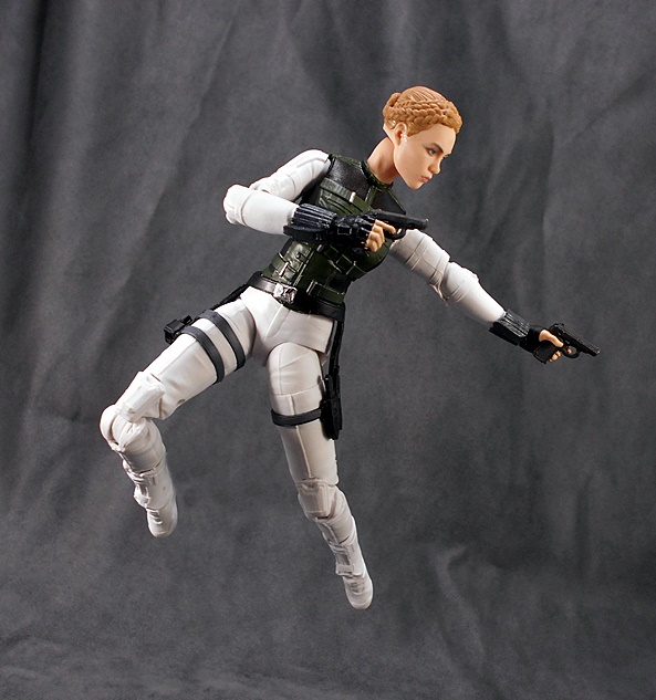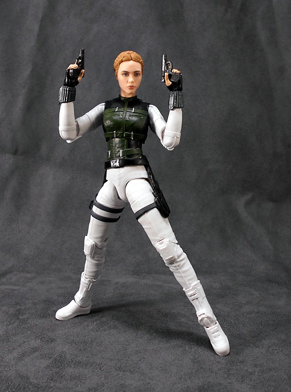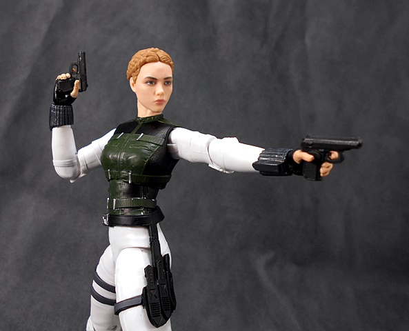 The guns are the only accessories she comes with, and I find it odd that she only has a holster for the one. It would have been cool to give her one perhaps on the back of her belt, but again Hasbro is just working with a film design here, and I’m not going to turn my nose up at an extra gun.