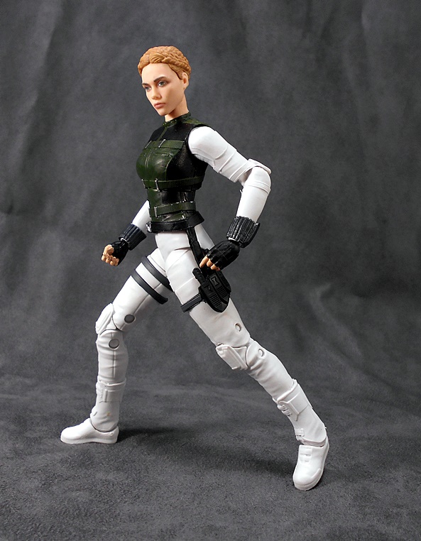 The head sculpt here is excellent. It’s not only a great likeness to Florence Pugh, an actress I’ve never even heard of before now, but there’s certainly a resemblance there to Scarlett Johansen as well, making me wonder if they aren’t supposed to be actual sisters in the film. I’ve never read anything that depicted them as blood relatives in the funnybooks, but if the push in the MCU will be to have Yelena take up the mantle as the new Black Widow, I wouldn’t be adverse to the MCU making that connection. Ah, but maybe that’s just me being sentimental. Anyway, the sculpted hair on this portait is especially well done, although the drawback is that it makes the neck joint extremely obvious from the back.