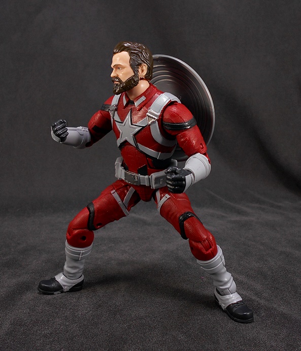 I do enjoy seeing the design transformation of comic characters into their MCU counterparts. The MCU usually pulls it off pretty well, and this is a case where I am yet again pleased with the results. Alexei’s suit is given a more realistic and tactical look, while still endowing it with a bit of a vintage flavor, as if this suit were a 50’s or 60’s design. It feels like this suit is the USSR’s rough equivalent to Captain America’s earlier costume. Every bit of the red suit is nicely textured, and there are gray straps sculpted on the inside of his thighs, and on his shoulders and chest, converging to the raised star in the center. He also has sculpted arm bracers and boots. The belt is a molded as a separate piece of plastic and fits snug on the figure’s waist. There are some pouches sculpted on the sides, and a painted belt buckle. Finally, you get some black paint hits throughout.