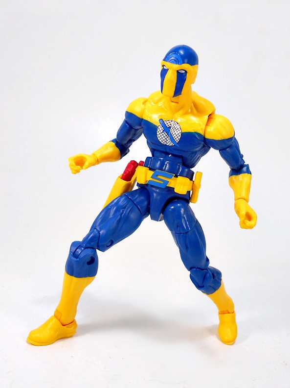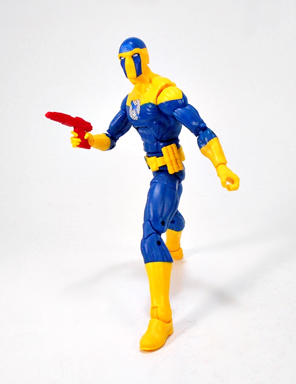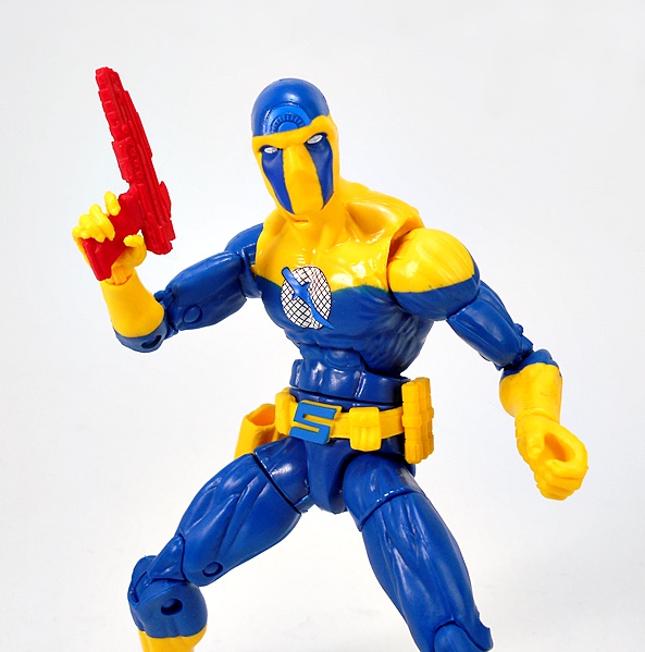 Now to be fair, this is not my first choice for costume. I would have much preferred his silver and black suit. But with that having been said I actually dig the flashy cheese of this look. How you get any spying done dressed like this, I don’t rightly know, but hey… you be you, Spymaster! As I’m sure you can tell, this is one of them budget figures that gets by on a lot of paint and very little fresh sculpting. But the paint lines are clean, there’s really no bleeding, and the vibrant yellow looks great alongside the darker blue. The only other detail is the chest logo, a dagger against a checkered backdrop, which is razor sharp.