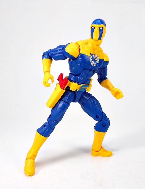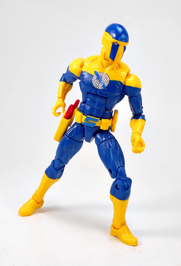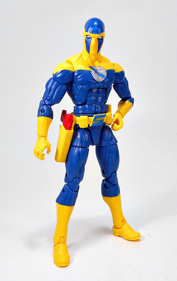 From the neck down the only new sculpting we get here is the yellow utility belt, which includes some sculpted pouches, a flash “S” logo as a buckle, and functional holster for Spymaster’s sidearm. The firearm is molded in red plastic, because that’s exactly the color this suit is missing! I feel like I’ve seen this pistol before, but I can’t quite place who had it last. It’s a very futuristic design, but I seem to recall his gun being a little chunkier. But what the hell, I think it suits him pretty well.