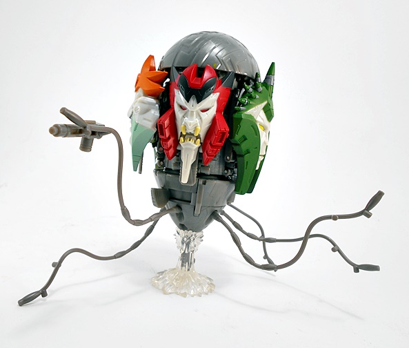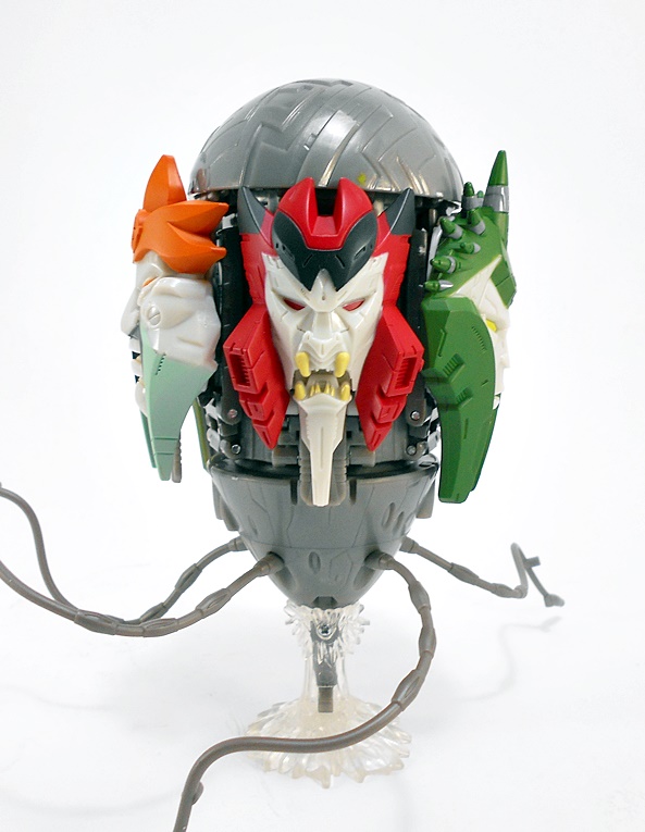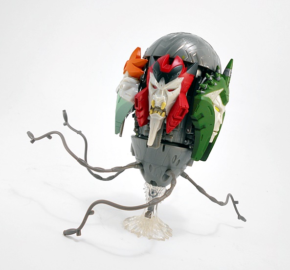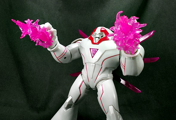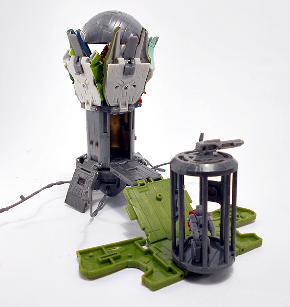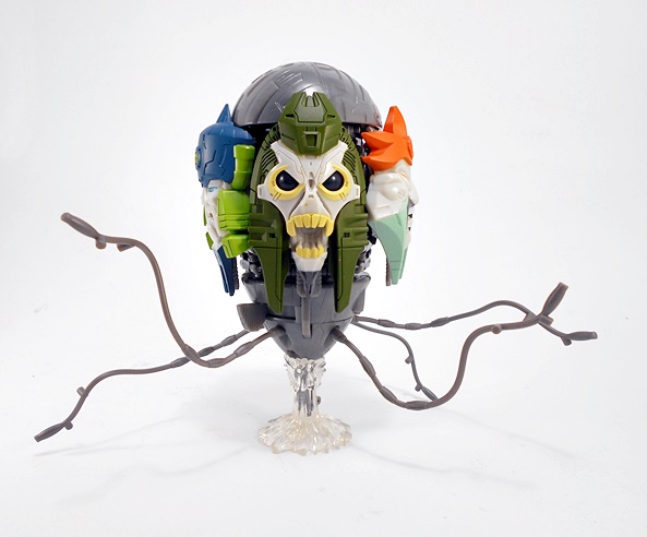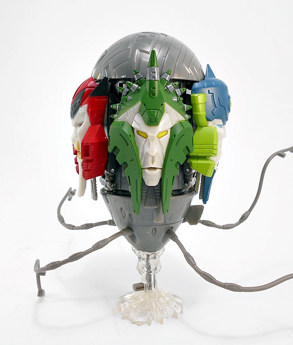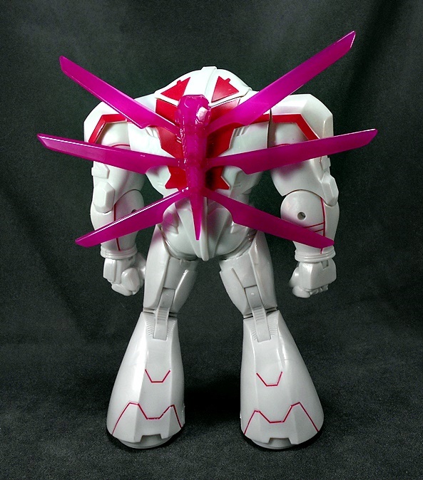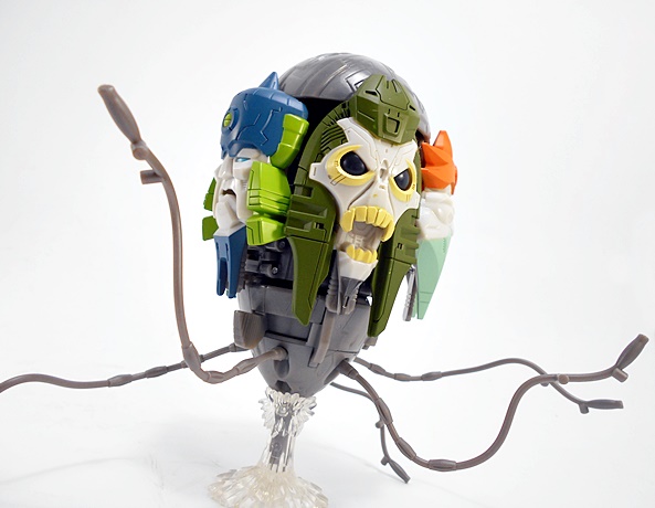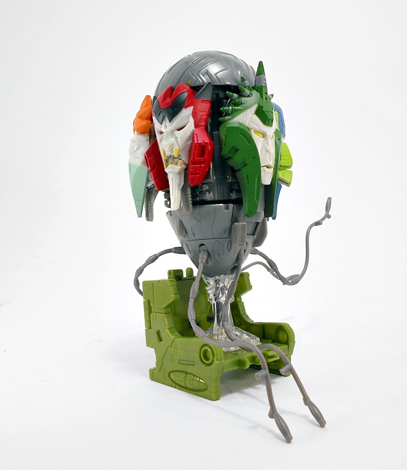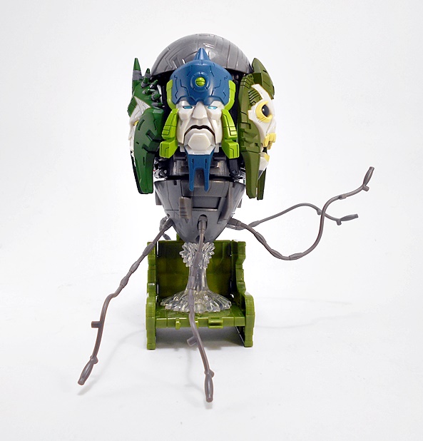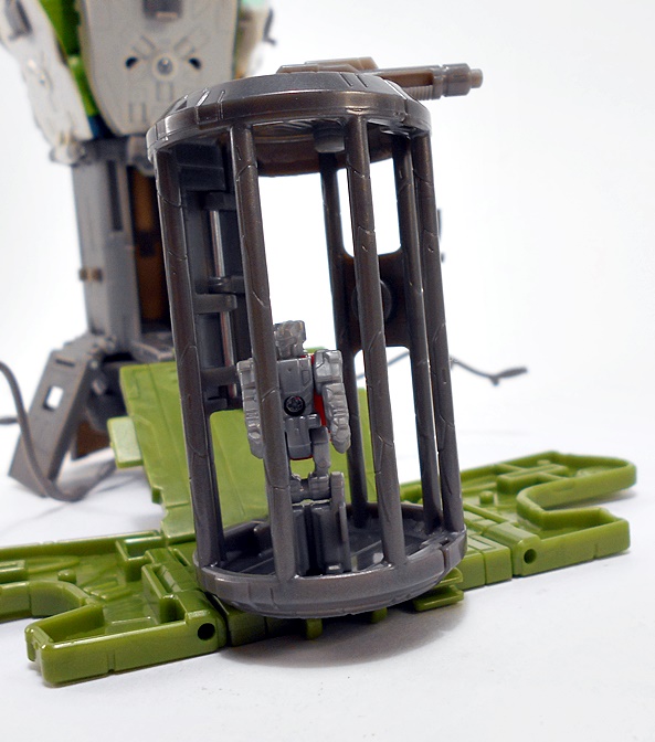 Grapple comes with a couple of replacement attachments for his hands. You just fold in the hand and that exposes a port to plug these into. One is his big claw that we saw attached to the crane earlier. I’m thinking he can shoot this like some kind of grappling hook. Or maybe it just shoots a mega-death-ray. Whichever the case it looks pretty cool.