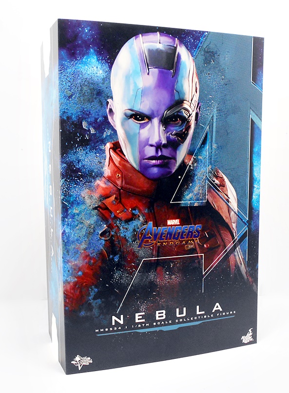 Hot Toys have been all about delays these days, distancing their releases from the respective movies by quite a bit. I imagine part of that is Covid-related, but I actually had one of my Sideshow statues delayed because of some kind of nautical catastrophe. And while I’ve been cancelling some, I let Nebula ride it out. And while Nebula is billed as an Endgame figure, I see her as a way to finally complete my Guardians of the Galaxy collection. Sure, she was given a lot of screen time in Endgame, and ultimately a satisfying character arc, but I associate the character most with Guardians Vol. 2. Anyway, the package doesn’t really convey the price of the figure inside. It’s a fragile window box housing a vac-formed plastic tray with an illustrated sleeve around it. Although, I have to admit that the artwork on that sleeve is absolutely breathtaking, particularly the colors. I don’t save these boxes anymore, but I could be persuaded to flatten out this sleeve and tuck it away somewhere, because it’s just too pretty to pitch. But enough about the package, let’s get her open and see what we’ve got!