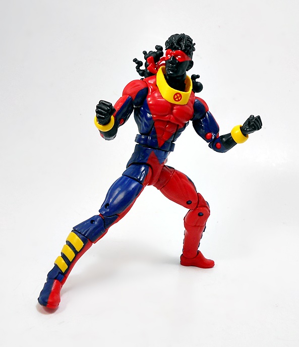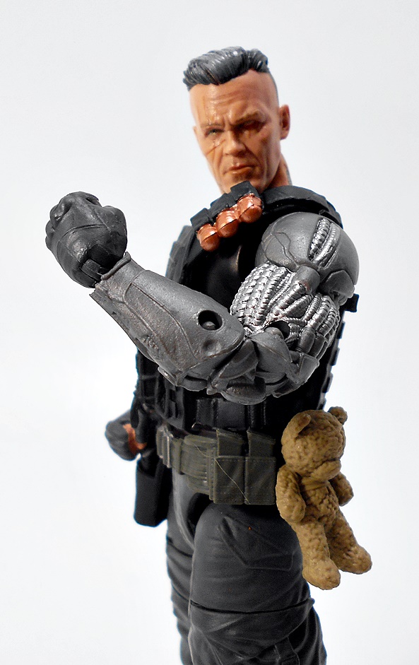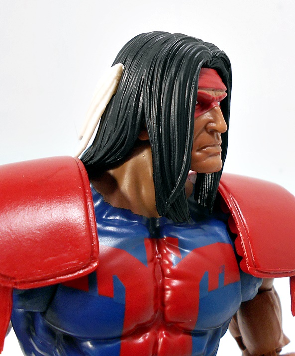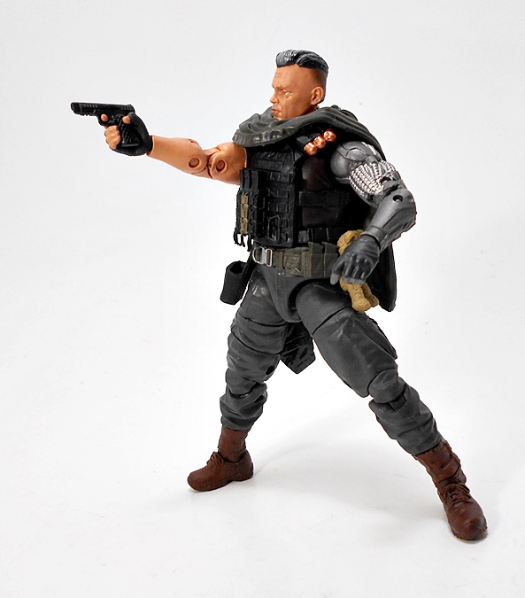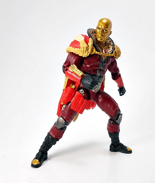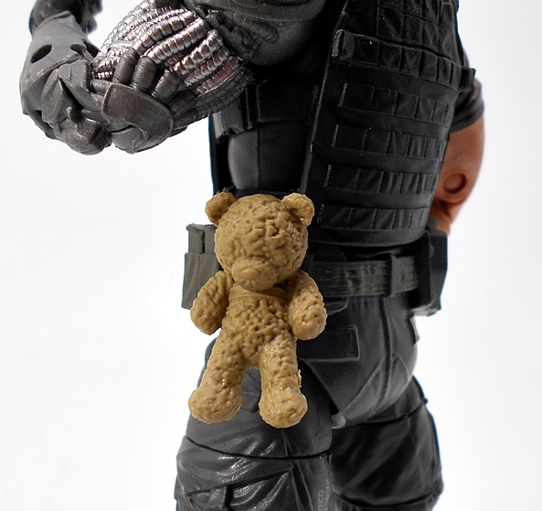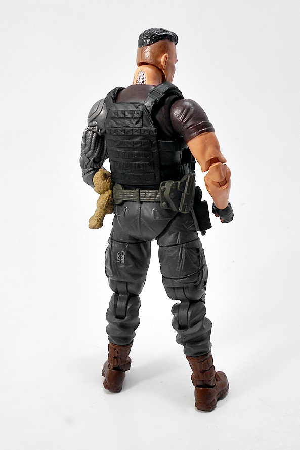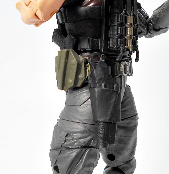 Some particularly noteworthy highlights are the reinforced shoulder pads, the Ravager badge on her right bicep, and the gun belt, which has a holster for her sidearm and straps to hold her baton in the back. Although, I’m a little unclear as to why she only carries one back there when she fights with two. The holster actually needs to be attached to the belt via two small hooks, and I don’t mind telling you that it was a daunting task to finally get it on. I had to rely on tweezers and I think I got through almost the entire Podcast I was listening to before I actually got those hooked. On the downside, because the figure is literally stitched into the suit, the articulation is severely limited up in her groin. I really can’t get much of a wide stance at all without fear of popping those stitches. At the same time, the boots are all sculpted in one piece, so forget getting her feet flat all the time. As a result, from the waist down, this is not a very dynamic figure to play with or pose.