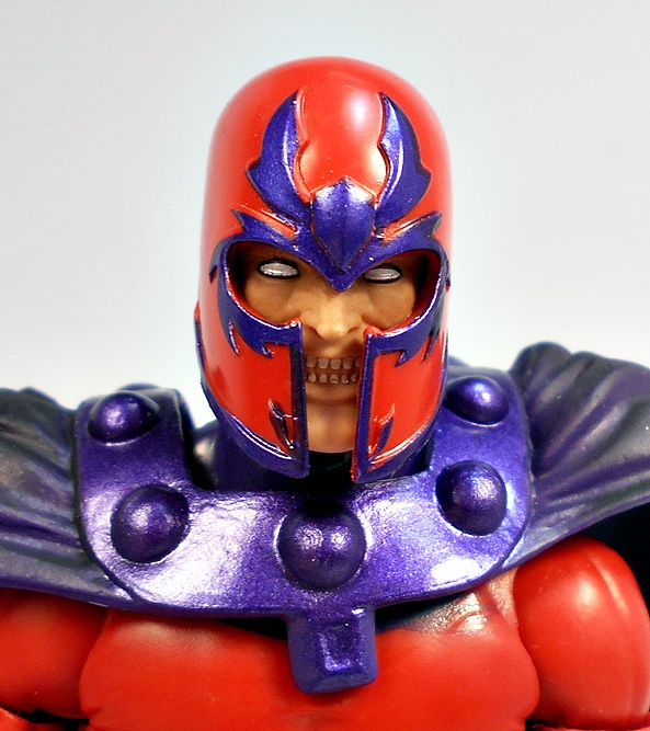Last time, Magneto came with both helmeted and un-helmeted heads, this time we get two helmeted heads with different expressions. The first is a fairly neutral expression, the second is full-on psycho relishing in his powers. The helmets are superb, and sculpted separately from the head to give it some nice depth. It’s also painted over in the same red and purple to match the rest of the costume. The purple paint on the trim could be a little tighter, but you have to get in pretty close to notice any issues. And while I love the face sculpts on both figures, the paint for the teeth on the second one could have been better. The teeth are brushed over with some white and the spaces between them are just left flesh colored.
