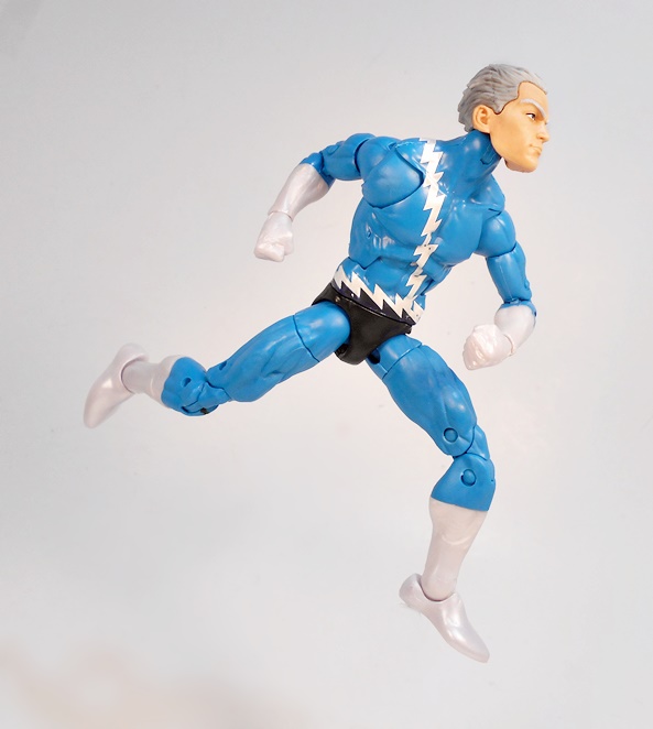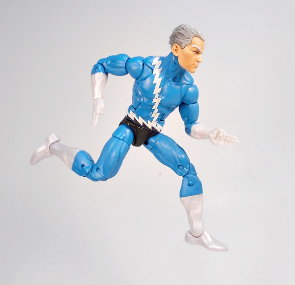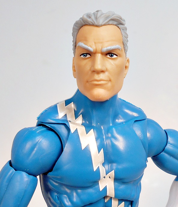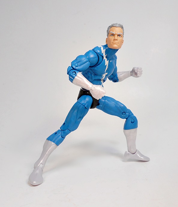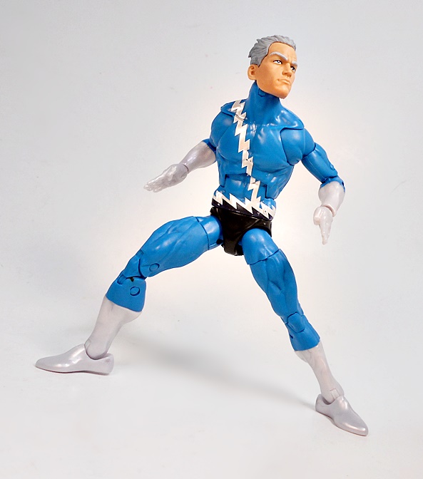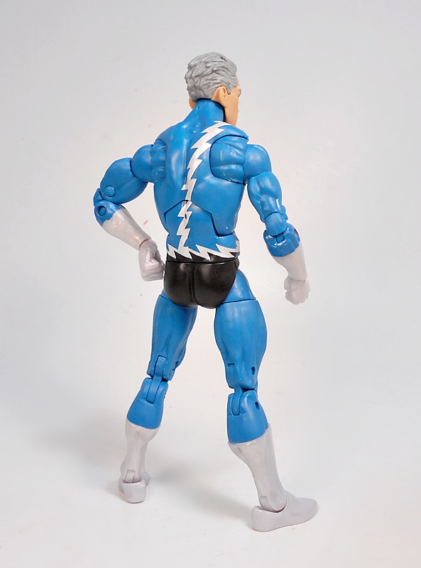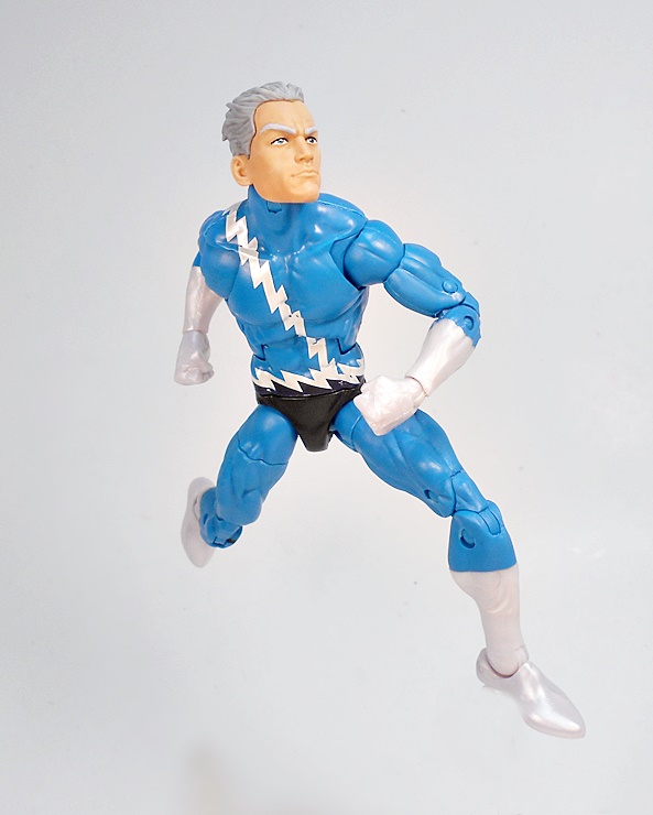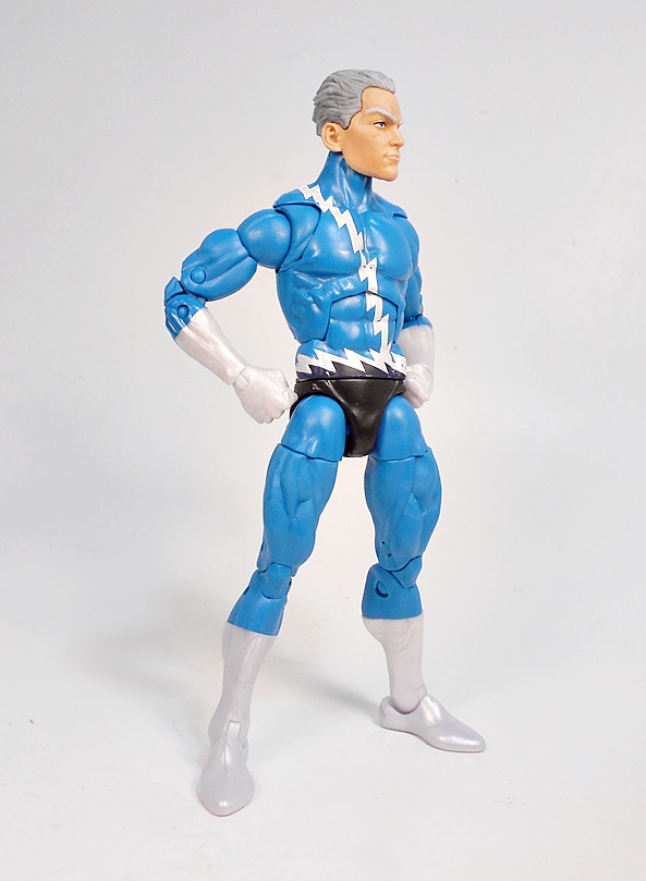 Unlike the other two figures here, this is Pietro’s first appearance in the modern Legends line and he’s looking great. I do love the look of this suit, even if it is achieved entirely through paint instead of original sculpting. And yup, they went with the blue suit over the green, and I’m totally fine with that. The blue and silver deco is very pleasing to the eye. In addition to the mostly blue body, you get pearlescent plastic for the boots, hands, and and a decent paint match for the rest of the gauntlets. He’s got some black undies, and a silver lightning bolt painted as a belt and shoulder strap. In terms of spray-on costumes, this is about as simple as it gets, but it works well and I’ve got no complaints! OK, there are a few minor chips in the lightning bolts, so I guess that’s one complaint.